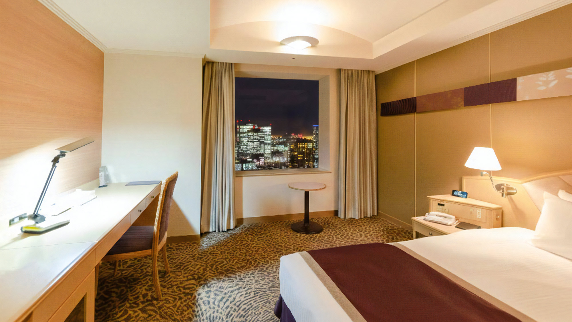 An upgraded twin room, offering stunning views of Tokyo's nightscape from both the guest room and bathroom.
