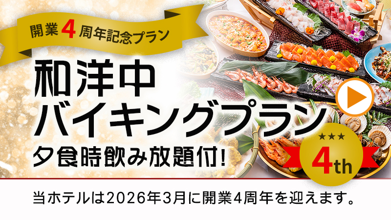 当ホテルは2026年3月に開業4周年を迎えます。これもひとえに多くの皆様のご支援のおかげと心より感謝申し上げます。これからも旅の想い出に残るホテルを目指して、スタッフ一同努めてまいります。