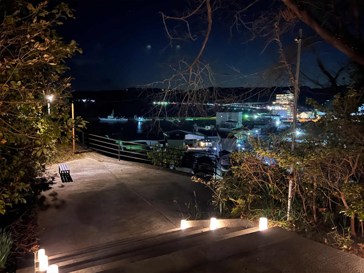 夕暮れ時から灯籠の幻想的なライトアップや眼下に広がる夜景を楽しむことができます。