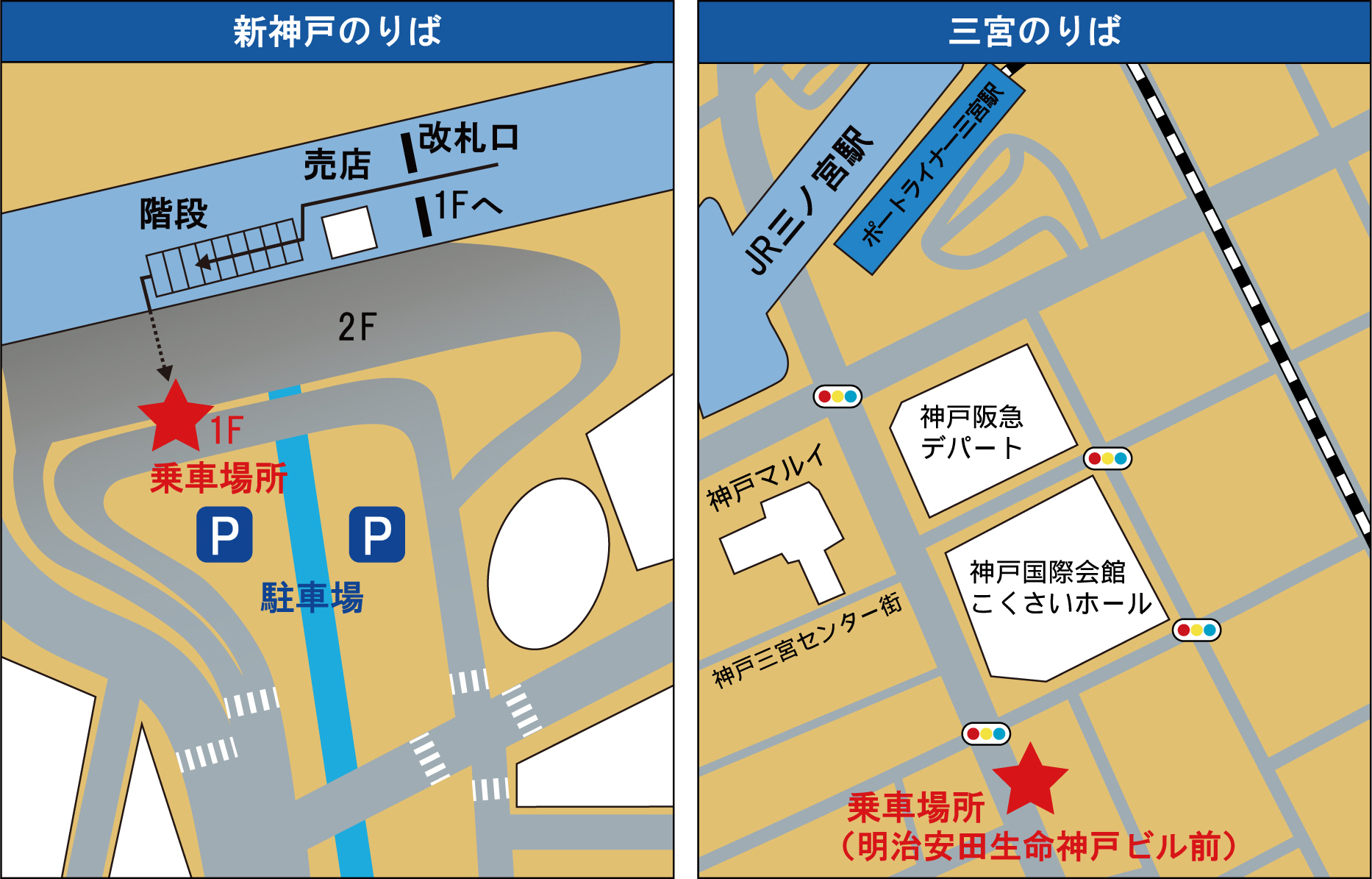 ・フラワーロードの整備により「三宮のりば」の場所が変更になっています。ご利用いただく日の「三宮のりば」をご確認ください。