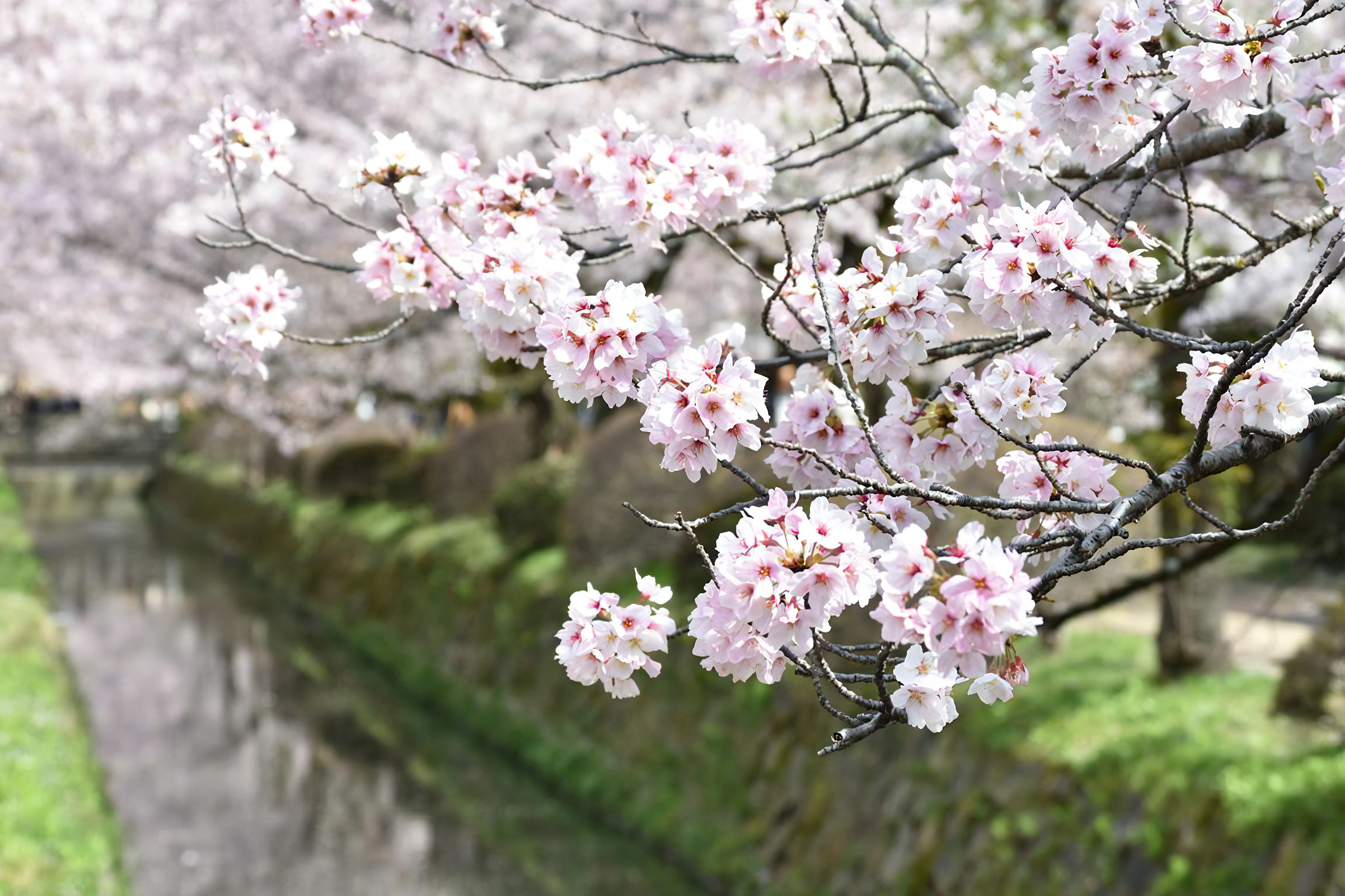 琵琶湖疏水に沿って続く約2kmの散策路で、春にはソメイヨシノの桜並木が見事です。水の流れと桜が織りなす穏やかな景色は、歩くだけで心が癒される空間。