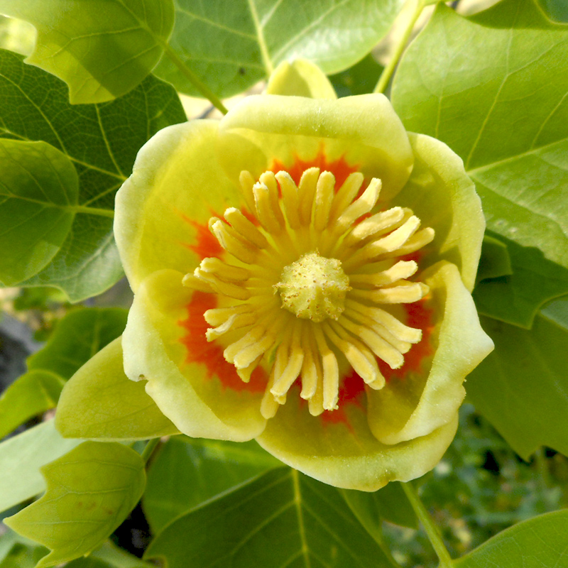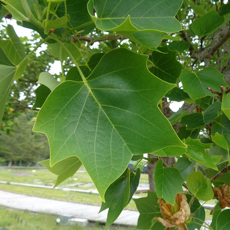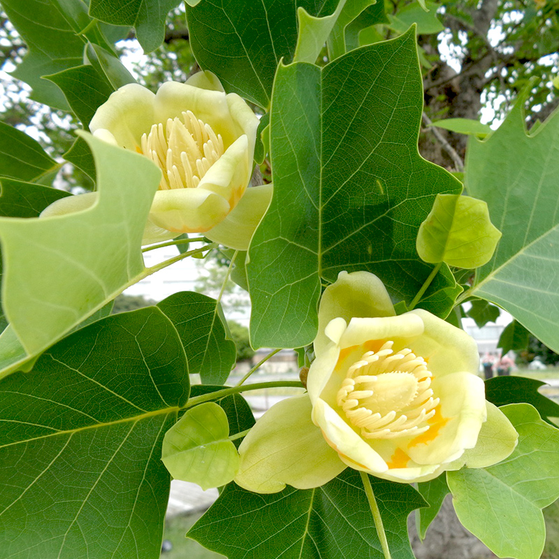 - ①百合の木(ユリノキ)が満開です。チューリップに似たクリーム色の花ですが木丈が高いので見つけ難いです。