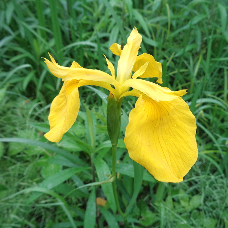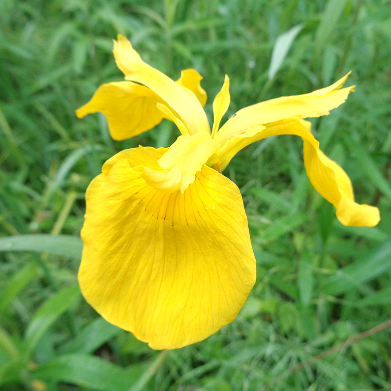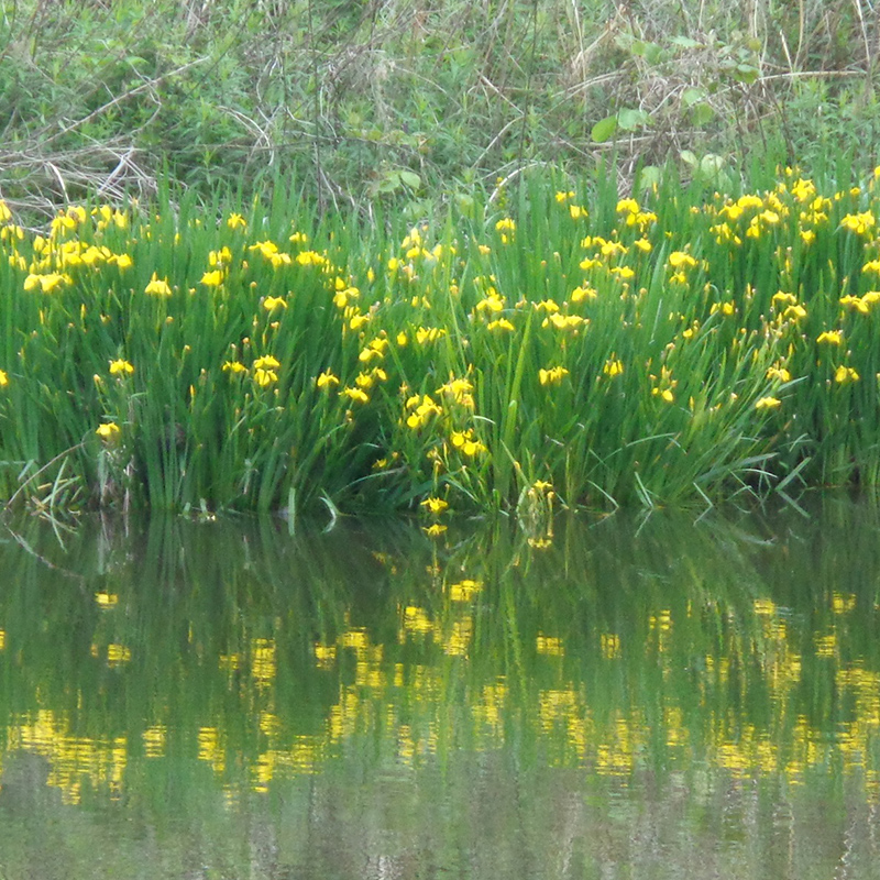 ②黄菖蒲(キショウブ)が咲いています。水辺に咲くため園内では満水池とビオトープに咲いています。