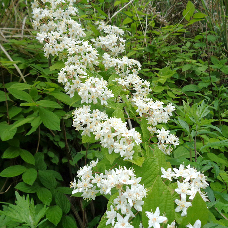 ③空木(ウツギ)が満開です。別名卯の花(ウノハナ)と呼ばれ、唱歌「夏は来ぬ」で歌われています。