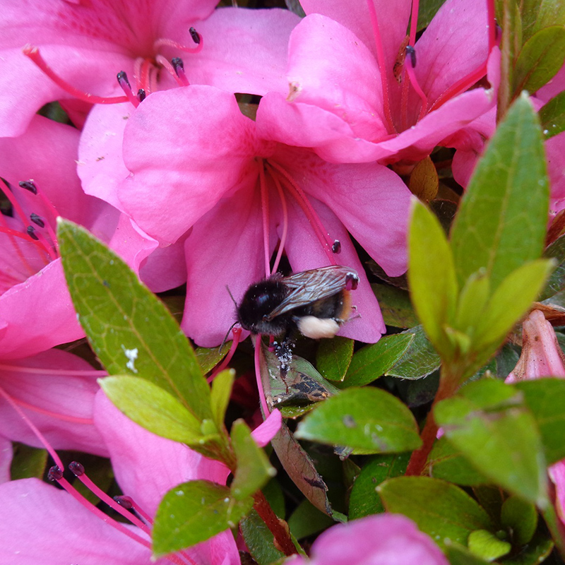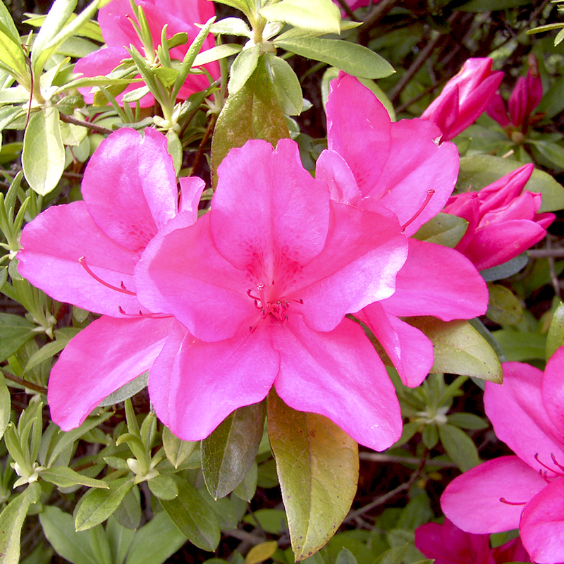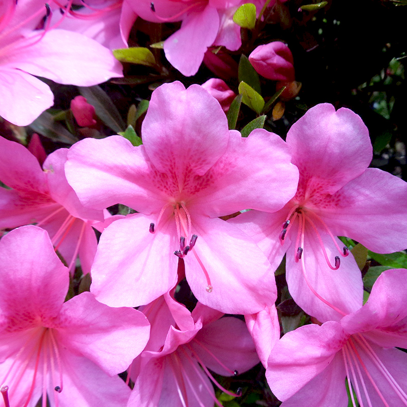 - ①皐月(サツキ)が満開です。旧暦の皐月(5月)の頃に咲くのでこの名前になりました。葉が小さいです。