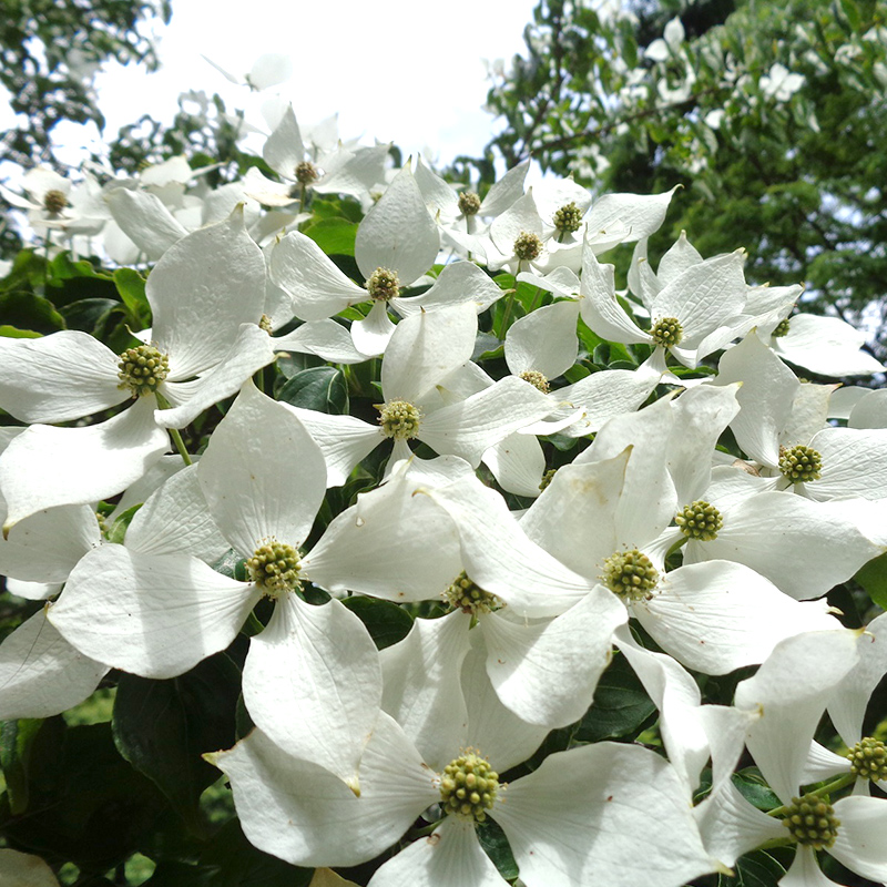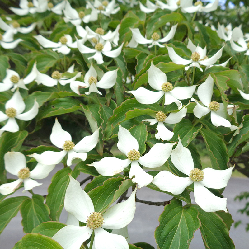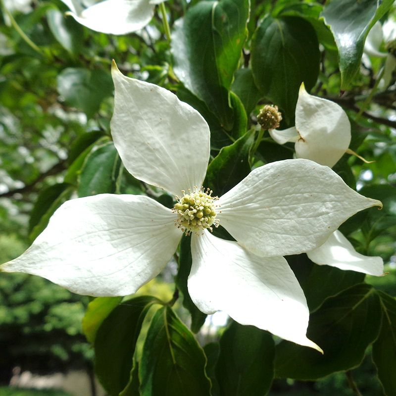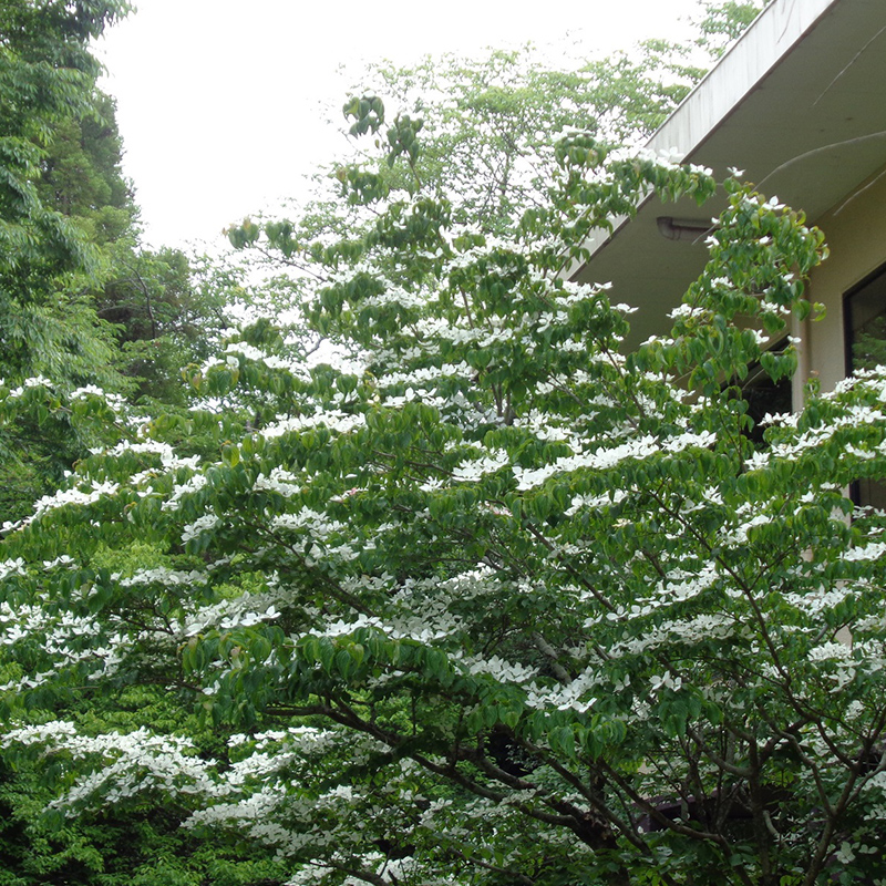 ②山法師(ヤマボウシ)が見頃です。ハナミズキの花にそっくりですが2週間程遅く咲き始めます。