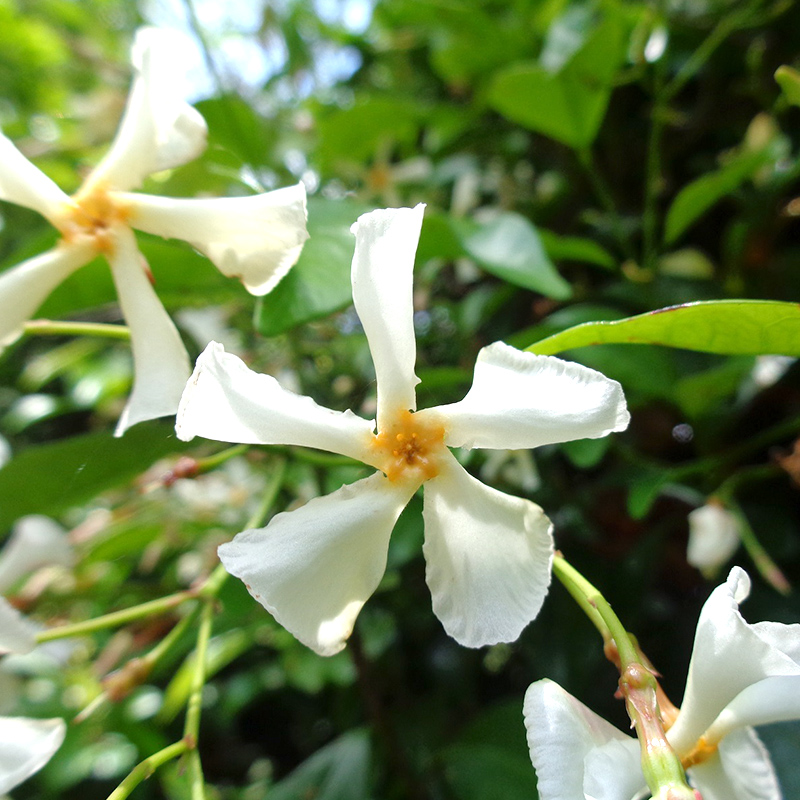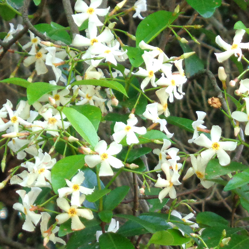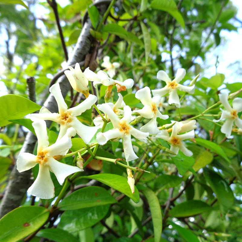 ⑥定家葛(テイカカズラ)が咲き始めました。花はスクリュー型の変わった形をして美味しそうな香りがします。