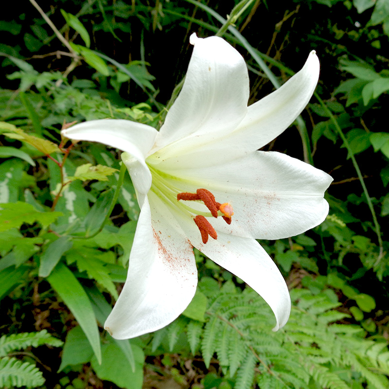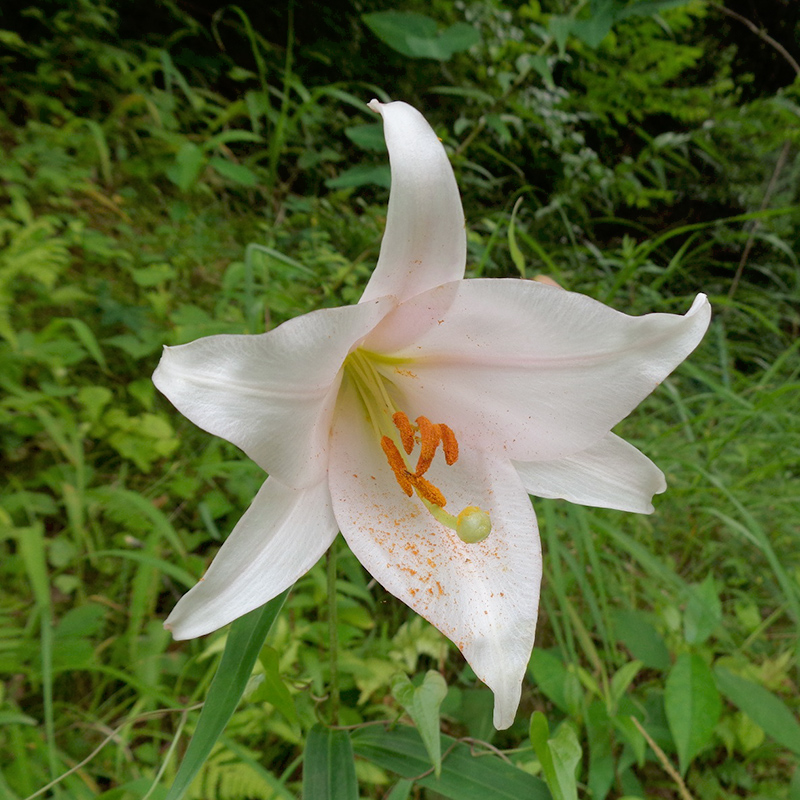 - ①百合のトップバッター笹百合(ササユリ)が咲き始めました。笹百合は日本特産の日本を代表する百合です。