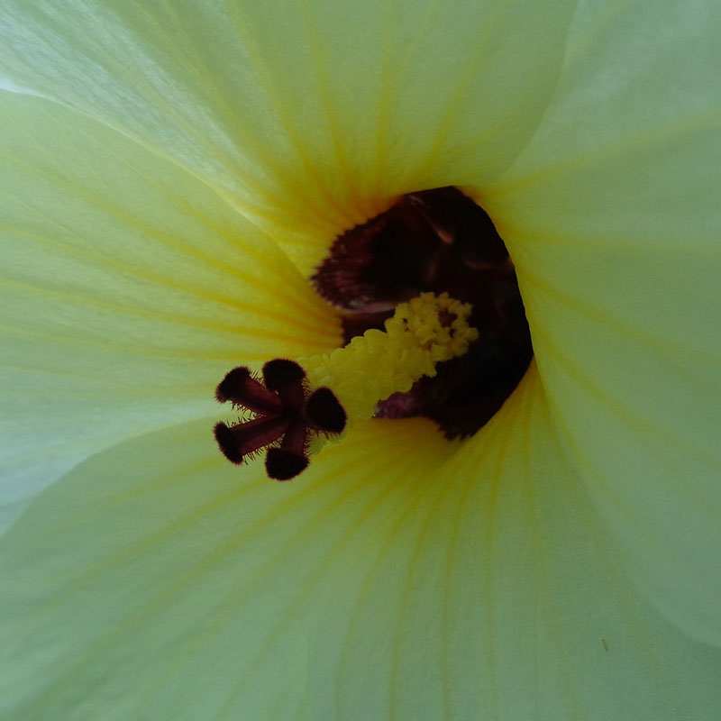 ▼雌しべの軸の途中から多数の雄しべが出ている