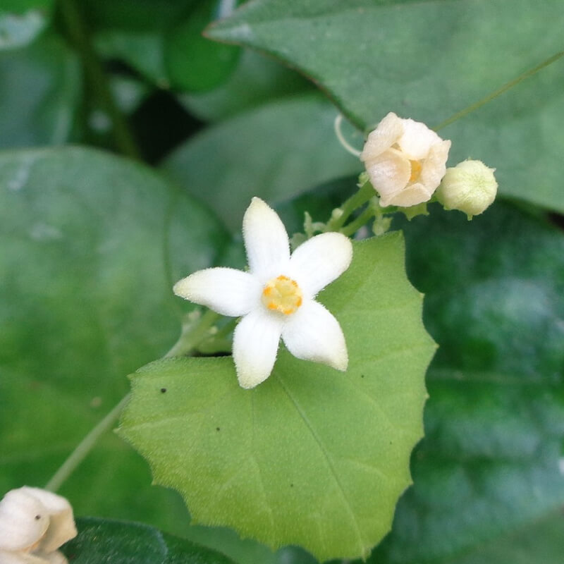 - ①小さな雀瓜(スズメウリ)の花が咲き始めました。実が約1cm程でカラスウリより小さいのでこの名になりました。