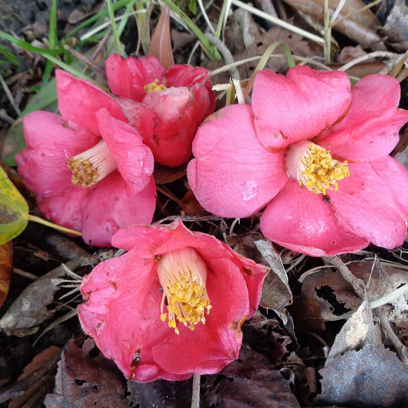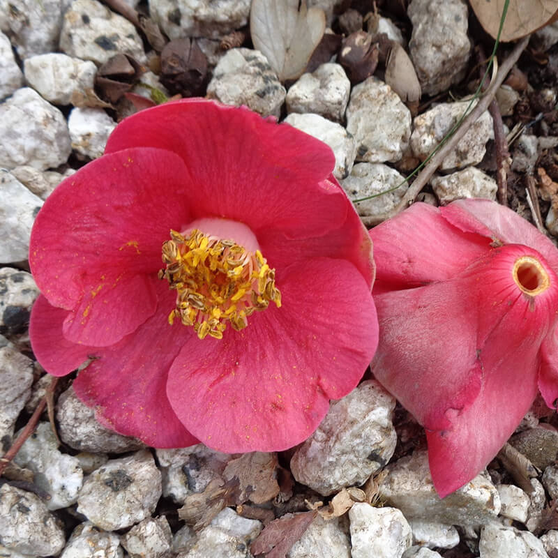 ▲花ごと落ちるのが椿の特徴