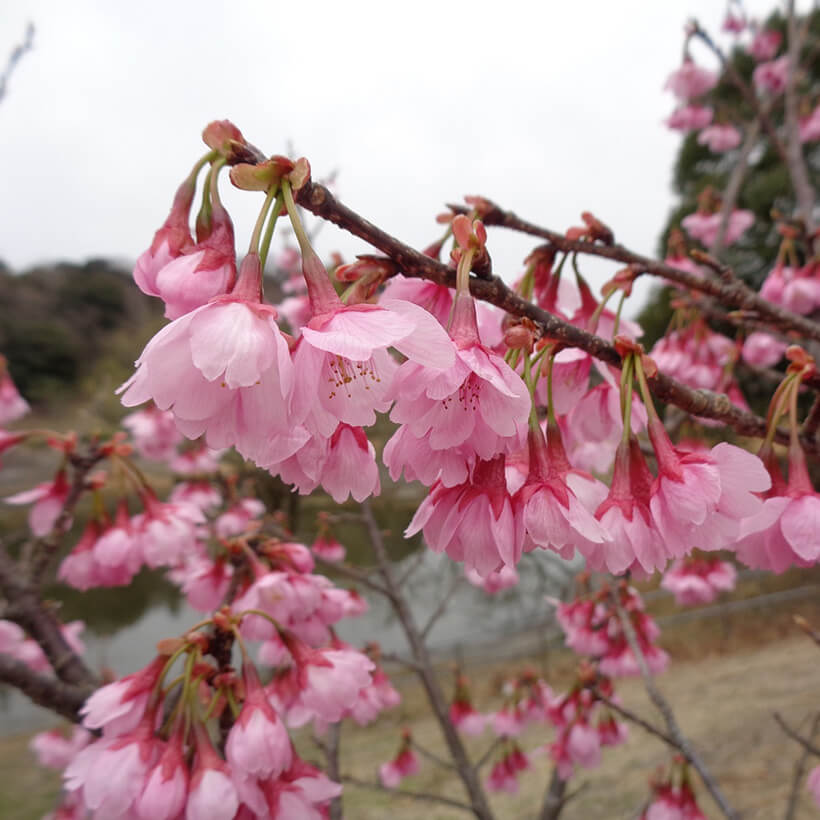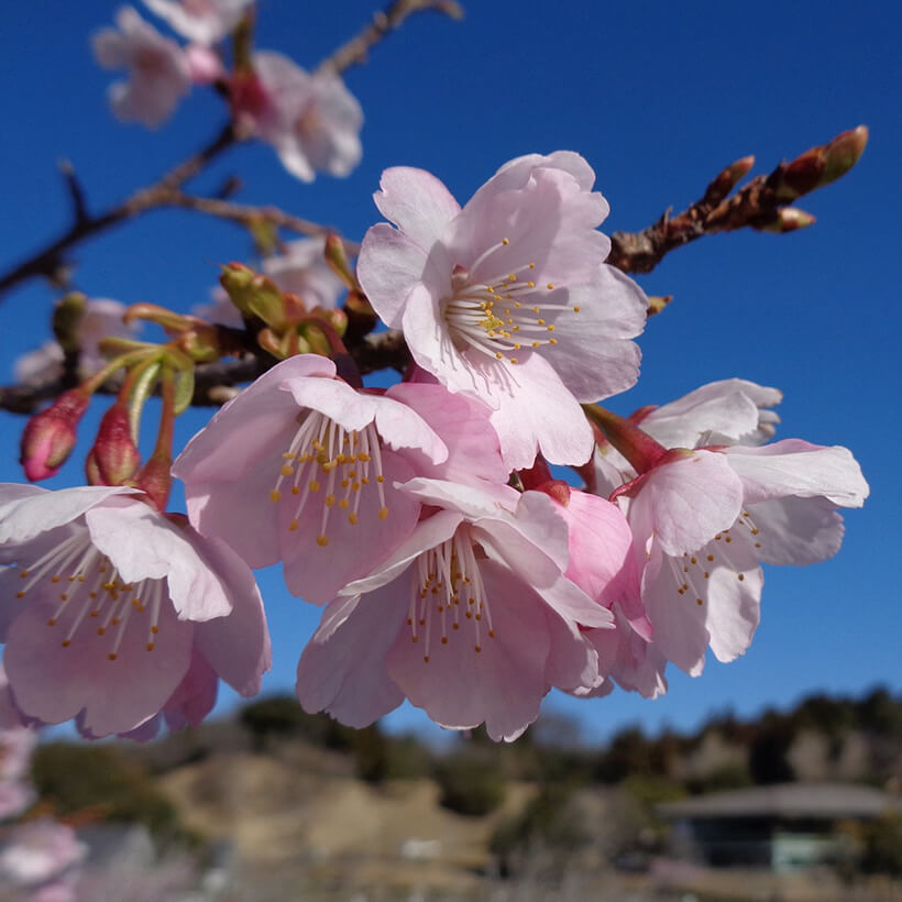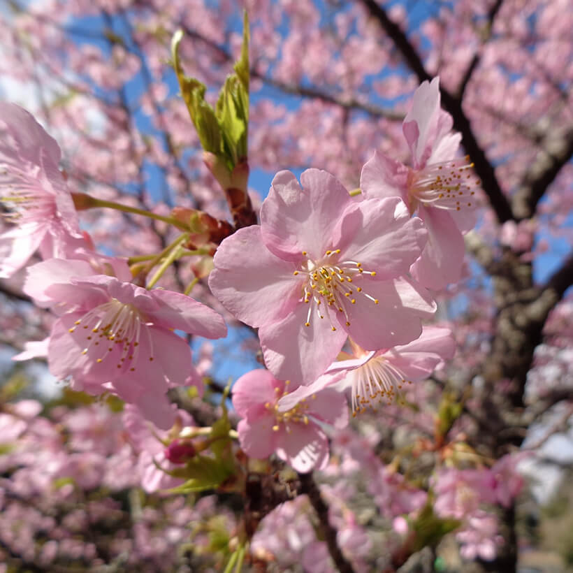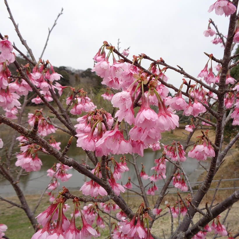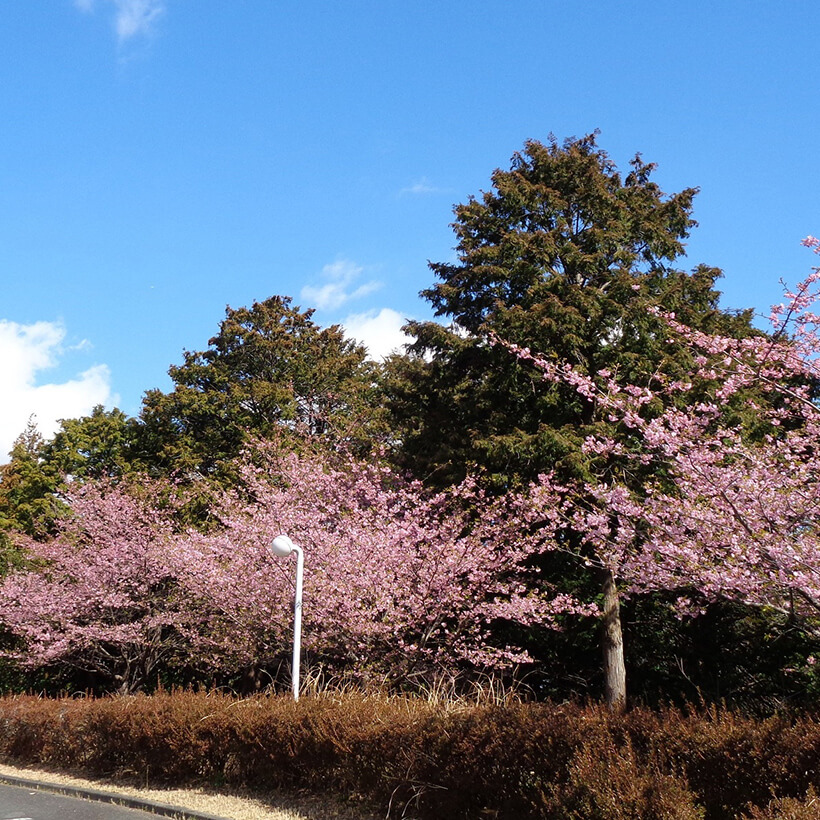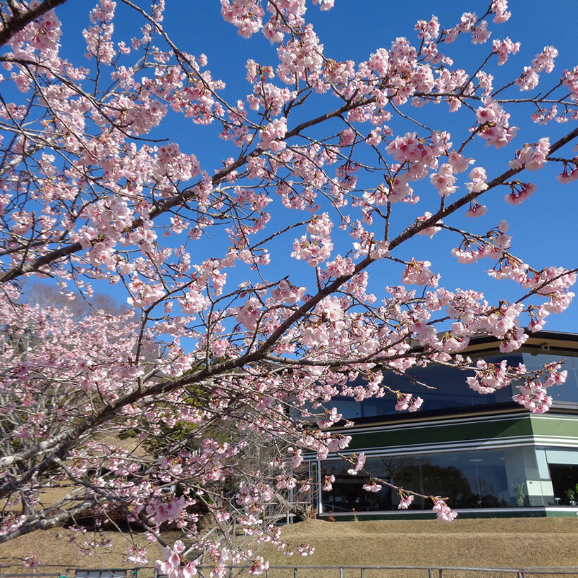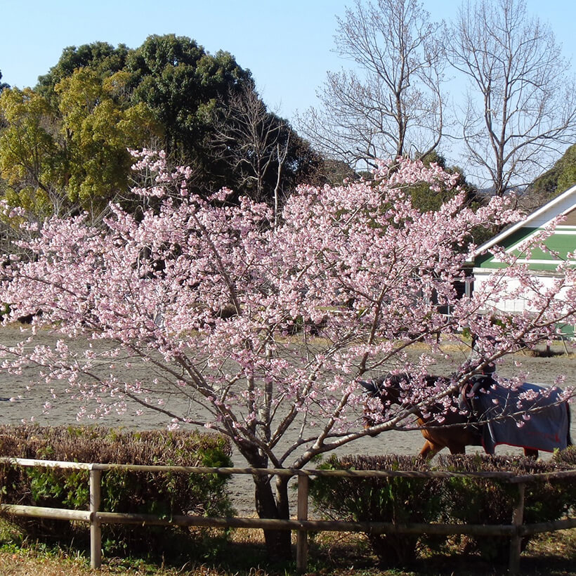 - 今年は、寒波の影響で河津桜の開花が大幅に遅れました。上旬に咲き進みすぐに満開になるのではないかと思われます。北正面ゲート回り周遊道路沿いの270本の河津桜を是非ご覧ください。周遊バスに乗ってのお花見が時間がかからず楽ちんですよ。(バス1周約15分)乗馬倶楽部馬場の寒桜、ウォーターパーク通りの掛川桜が咲き、染井吉野は下旬〜4月上旬が見頃と思われます。花いっぱいの春の園内散策をぜひお楽しみください。