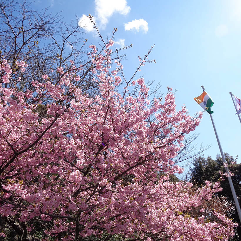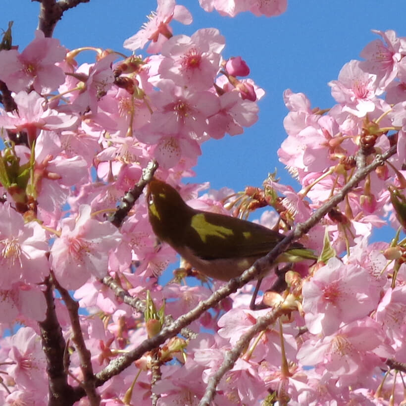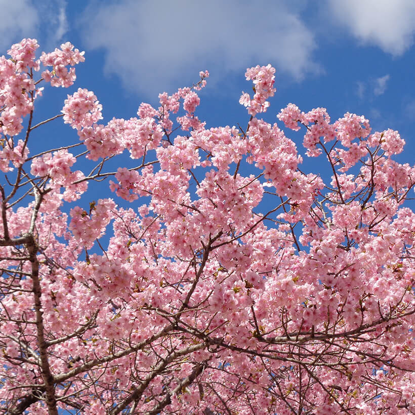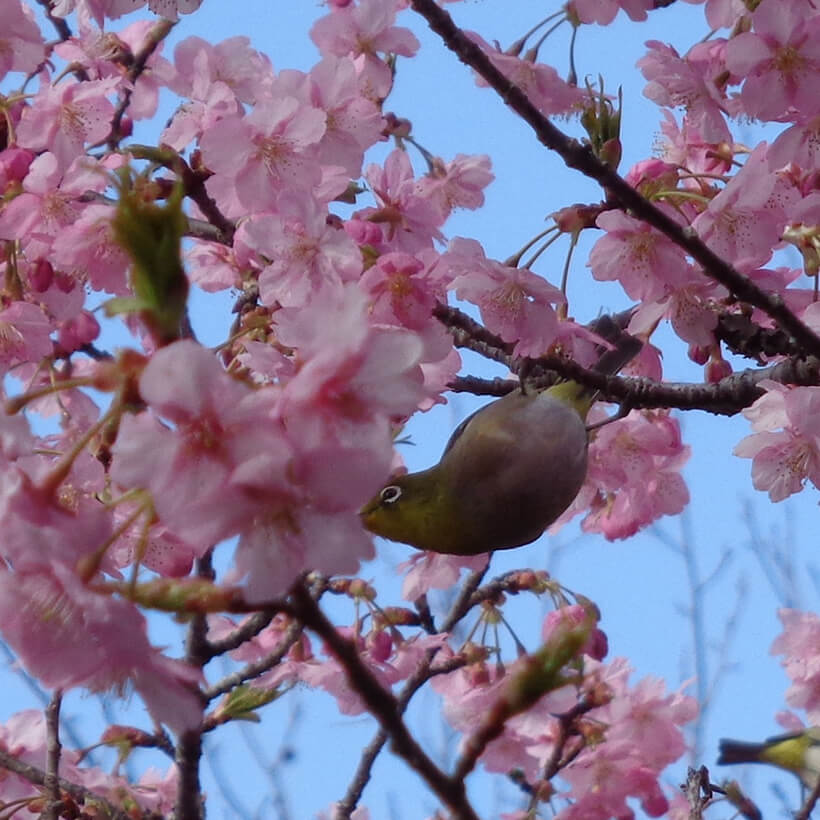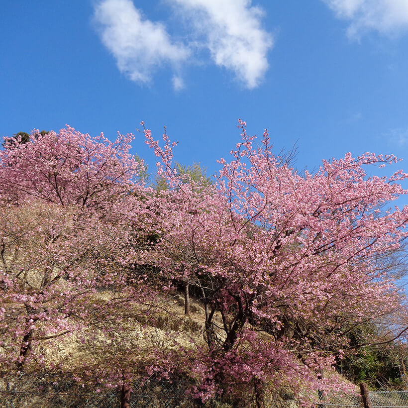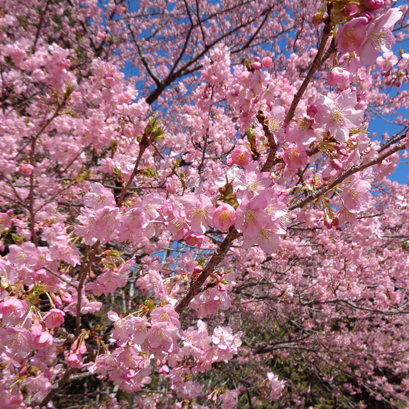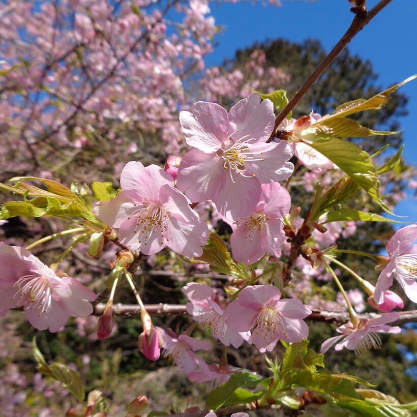- 今年は、寒波の影響で河津桜の開花が大幅に遅れました。上旬に咲き進みすぐに満開になるのではないかと思われます。北正面ゲート回り周遊道路沿いの270本の河津桜を是非ご覧ください。周遊バスに乗ってのお花見が時間がかからず楽ちんですよ。(バス1周約15分)乗馬倶楽部馬場の寒桜、ウォーターパーク通りの掛川桜が咲き、染井吉野は下旬〜4月上旬が見頃と思われます。花いっぱいの春の園内散策をぜひお楽しみください。