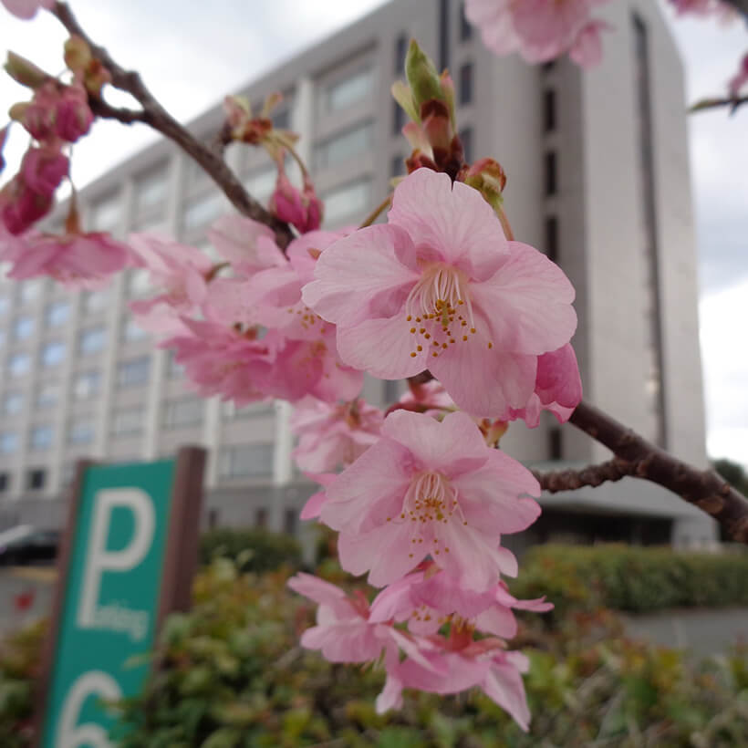 ▲メインロビー前の河津桜