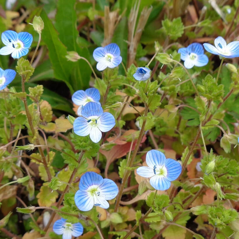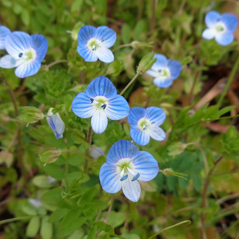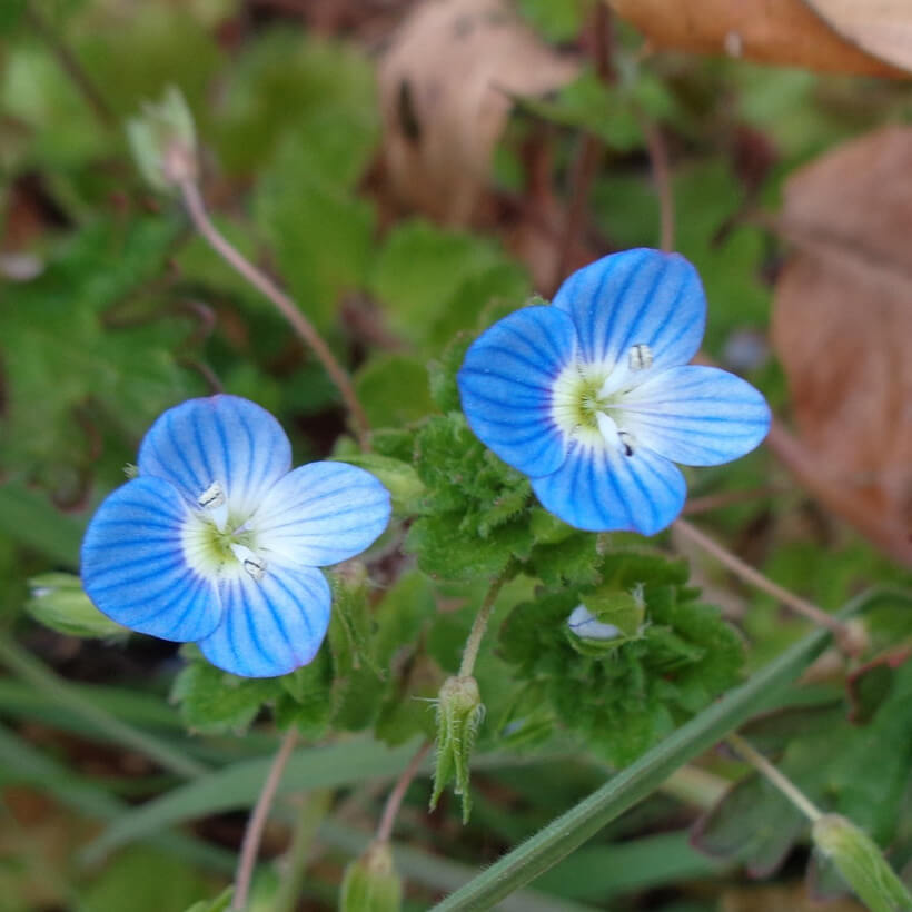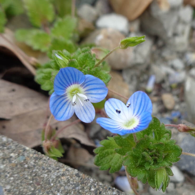 - ①大犬(オオイヌ)のふぐりが咲いています。瑠璃色の小さな花でかたまって咲いているととてもきれいです。