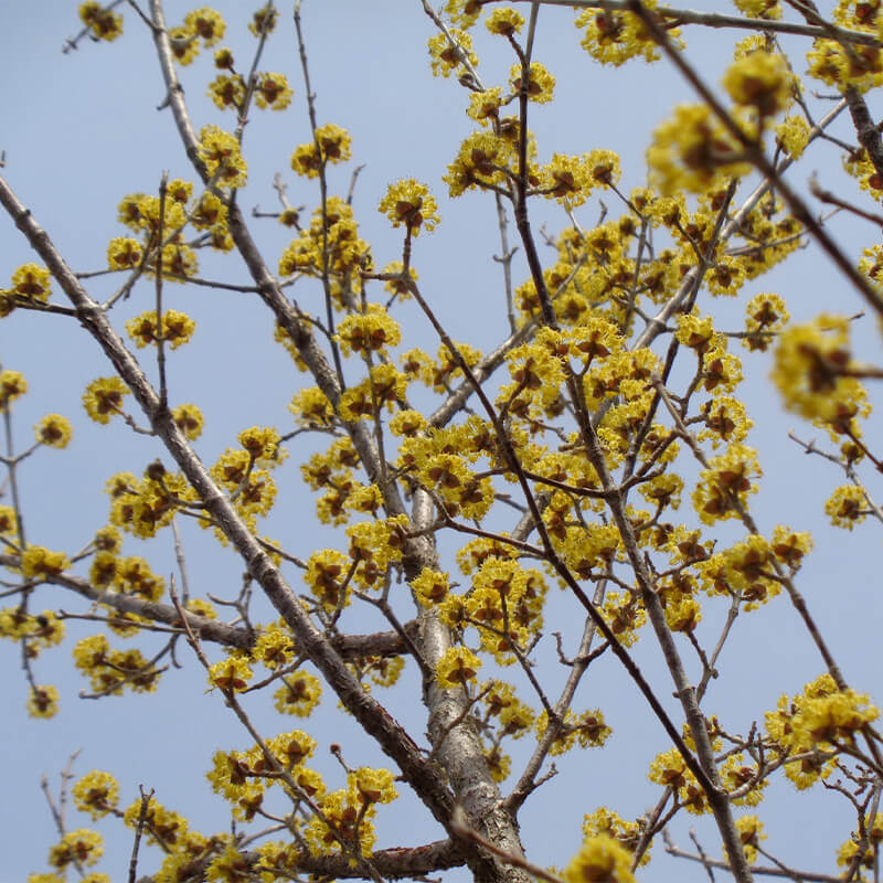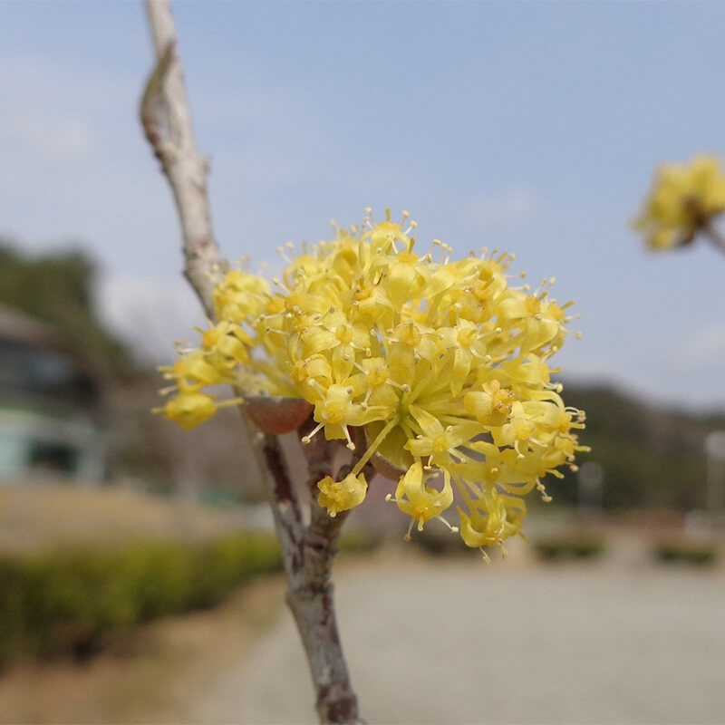 - ①山茱萸(サンシュユ)が満開です。春の光を浴びて黄金色に輝いて見える事から別名「春黄金花(ハルコガネバナ)」