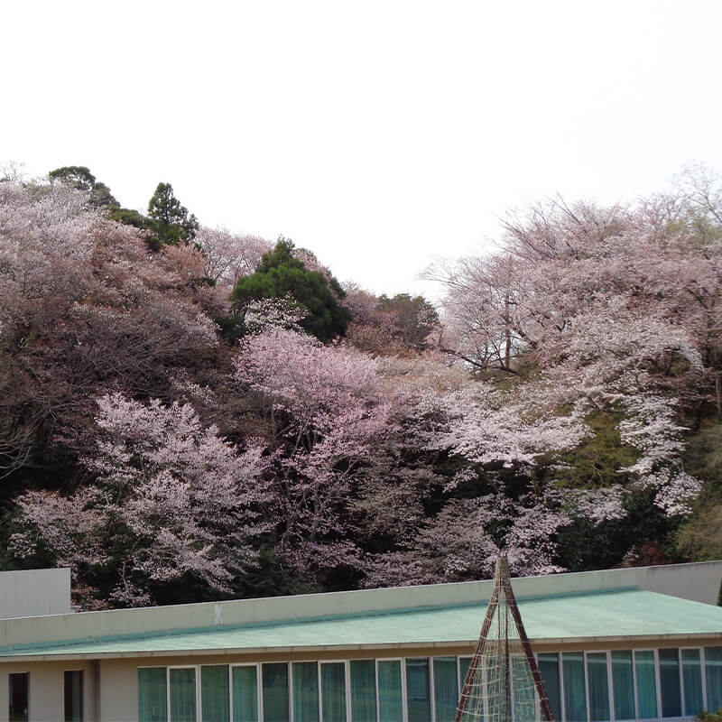 ▲メインロビー前の山桜
