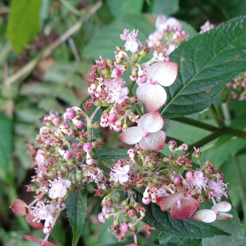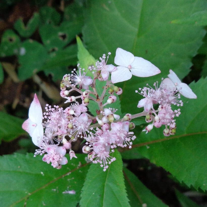 ②園内の日陰で草紫陽花(クサアジサイ)が咲いています。紫陽花の様な花が咲く草ということでこの名になりました。