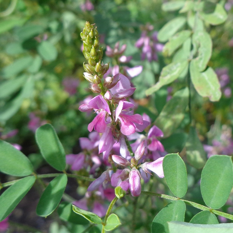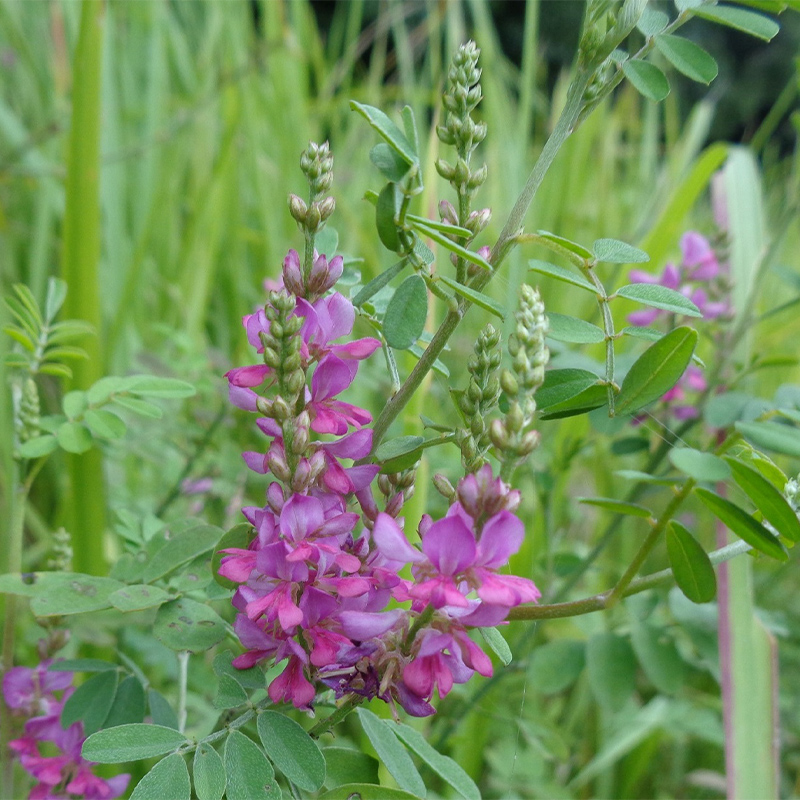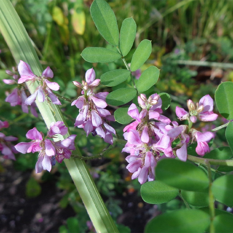 - ①駒繋ぎ(コマツナギ)が咲いています。茎が駒(馬)を繋げるほど丈夫ということからこの名になりました。