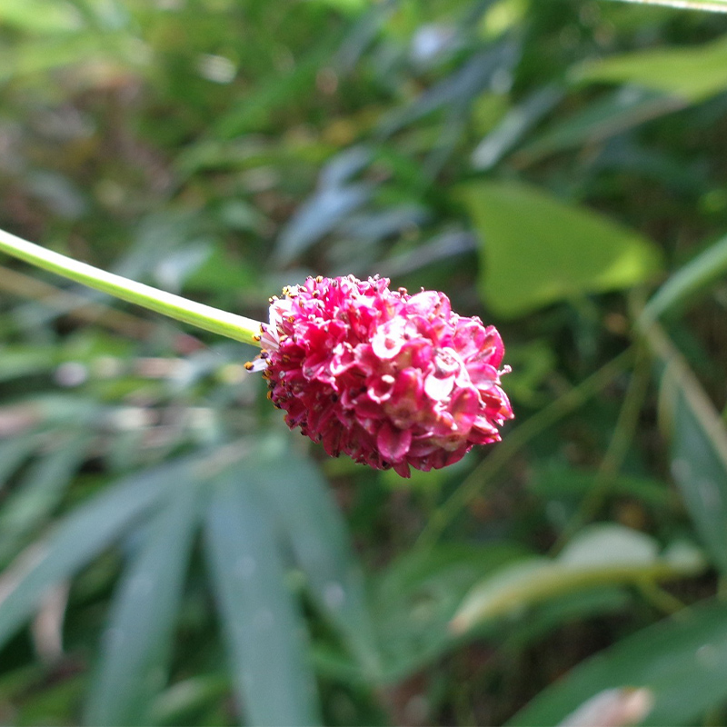 ②吾亦紅(ワレモコウ)が咲いています。花らしくない暗い紅色の地味な花で、秋の侘しさを象徴する植物として、源氏物語や徒然草にも登場しています。また秋の季語として数多くの俳句にうたわれています。