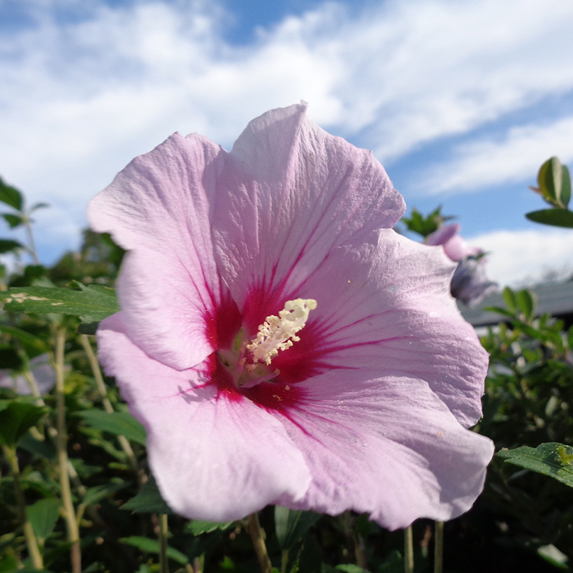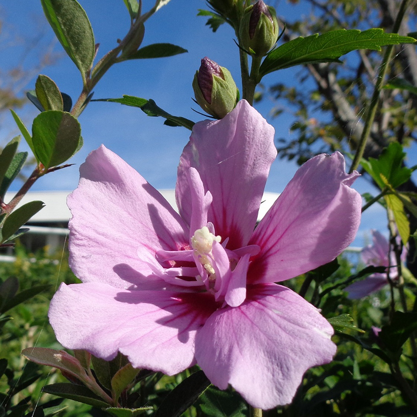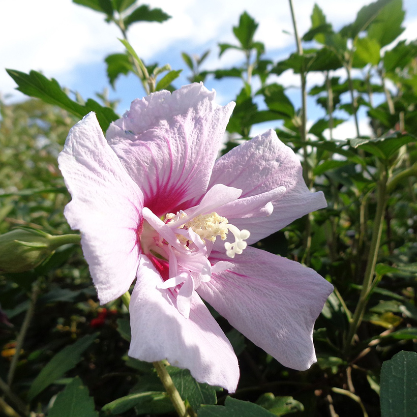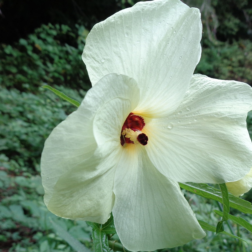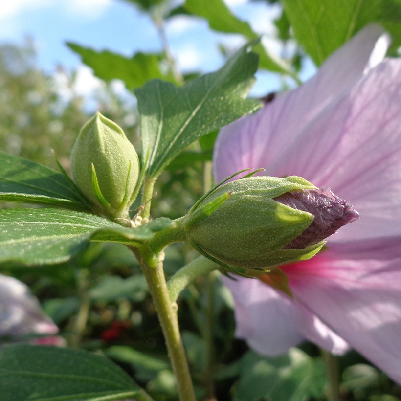 - ①黄蜀葵(トロロアオイ)が咲いています。根に粘り気のある白い液を含んでおり、これをトロロになぞらえてこの名がつきました。直径10〜20cmのクリーム色の花で、オクラの花に似ているので「ハナオクラ」とも言われます。