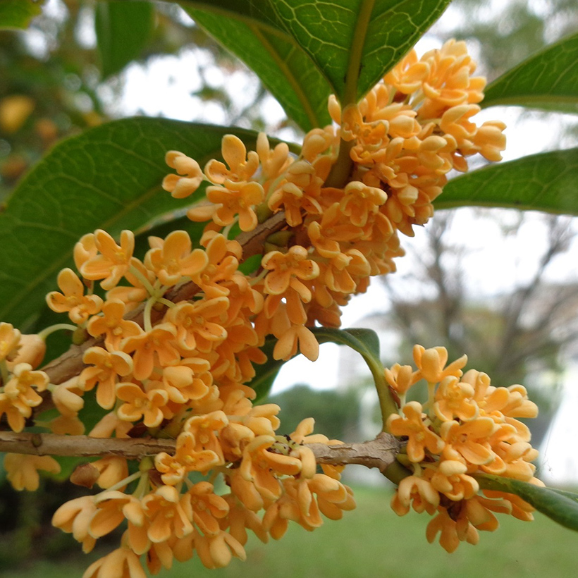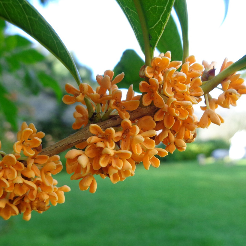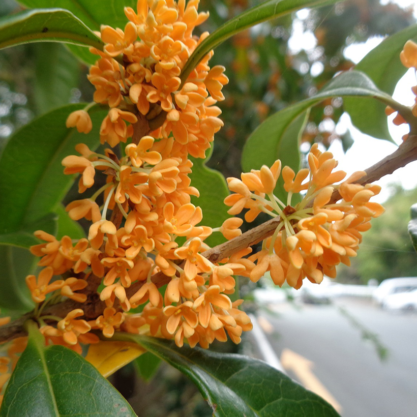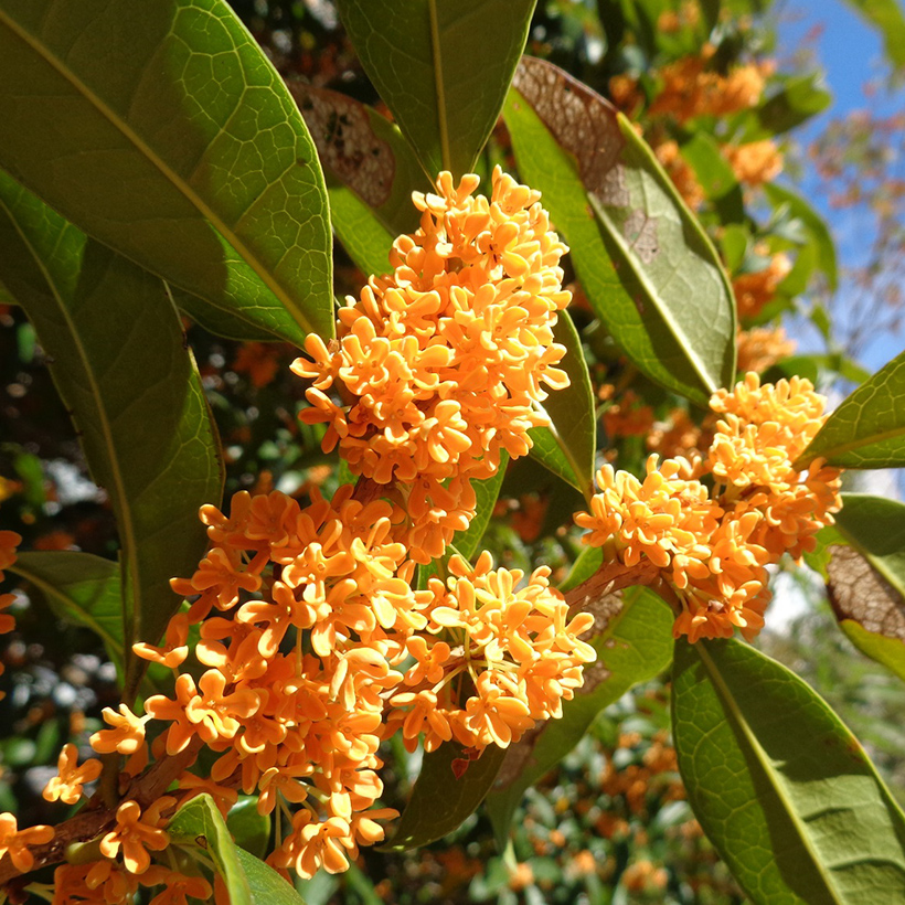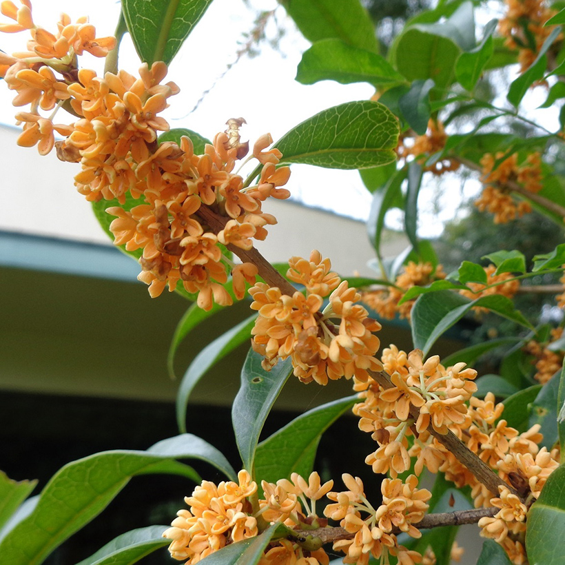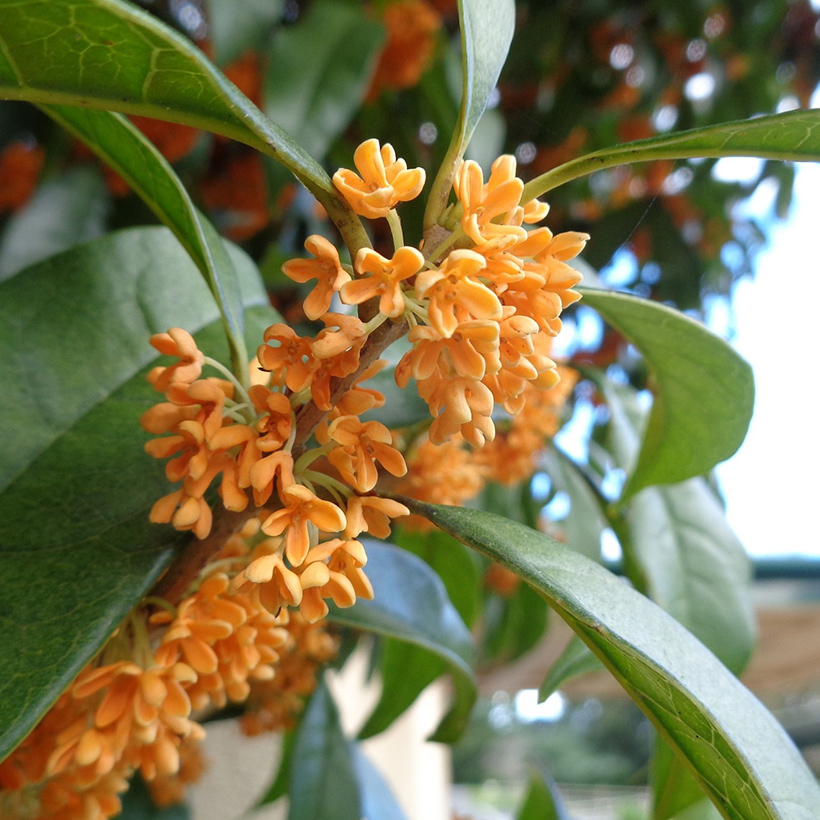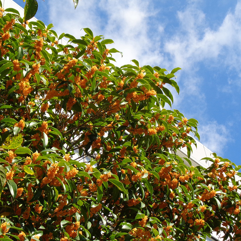 - 甘い香りを放って金木犀(キンモクセイ)が咲いています。金木犀は、春の沈丁花(ジンチョウゲ)、夏の梔子(クチナシ)と並び香りが楽しめる「三大香木」のひとつです。香りは記憶を蘇らせるといいますが皆さんはどんな思い出がありますか?