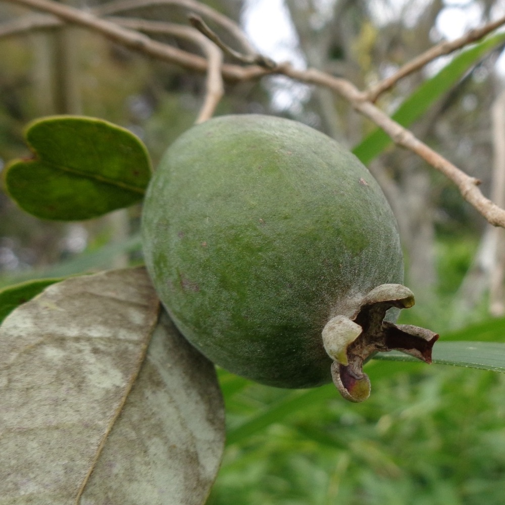 - ①フェイジョアの実が生っています。最初は固いけど熟してくると甘~い香りがして食べることができます。