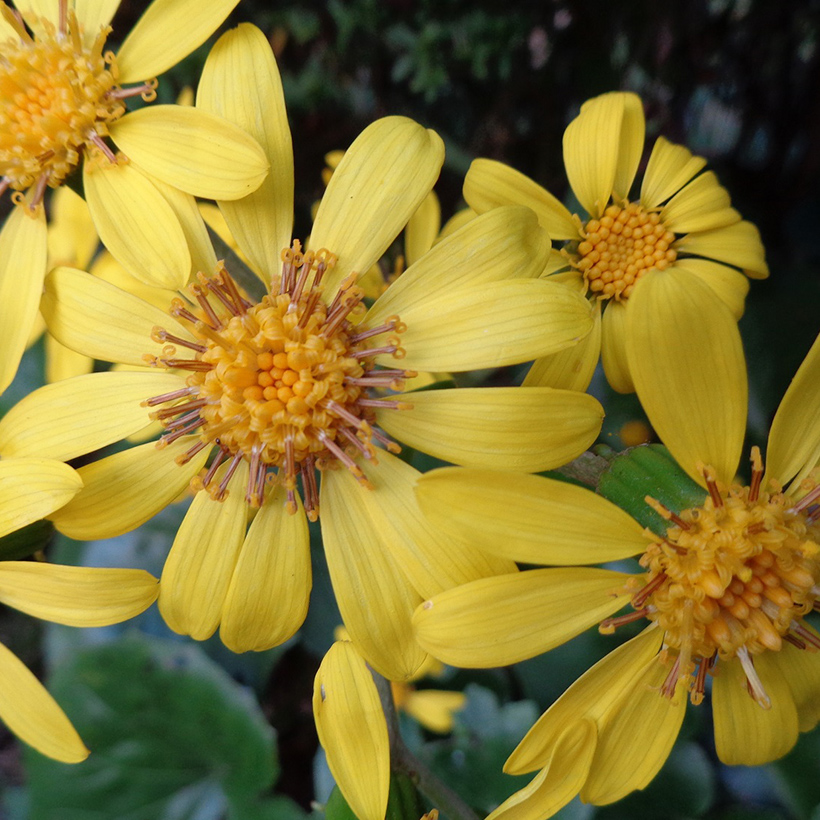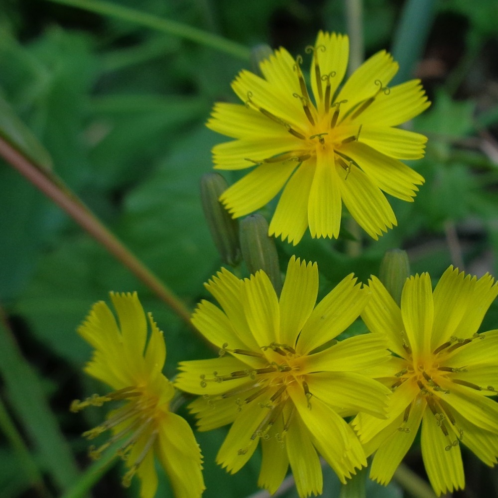 - ①薬師草(ヤクシソウ)が咲いています。菊の仲間で花の少ない時期に鮮やかな黄色の花を咲かせとても目立ちます。