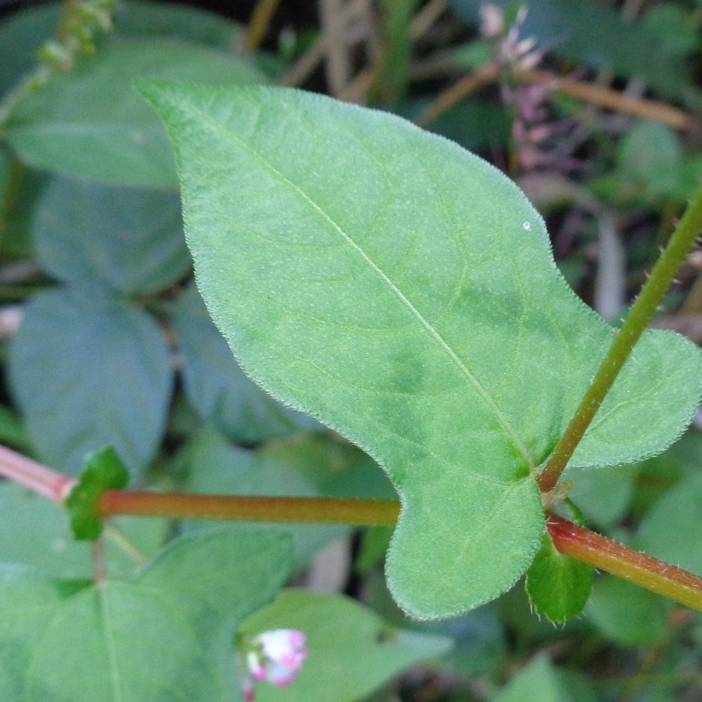 ②溝蕎麦(ミゾソバ)がビオトープに群生しています。枝先にピンク色の可愛い小花を密集させて咲いています。
