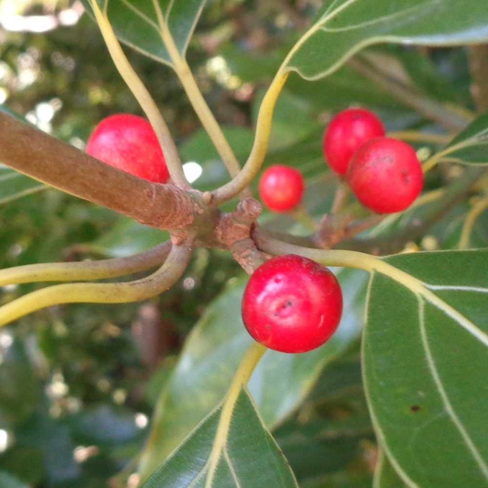 ③白梻(シロダモ)の実が色づきました。もう少しすると花も咲き、実と花を同時に見ることができる不思議な木です。