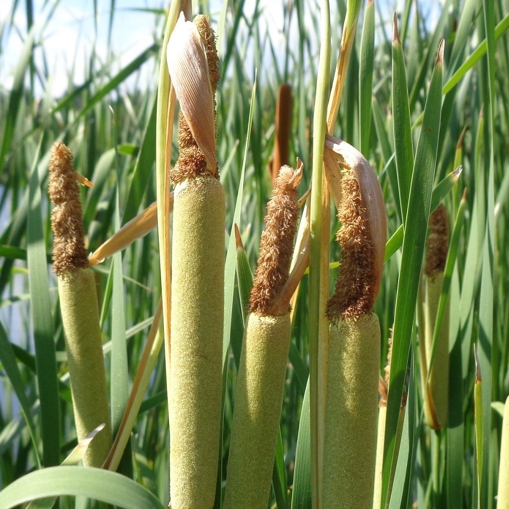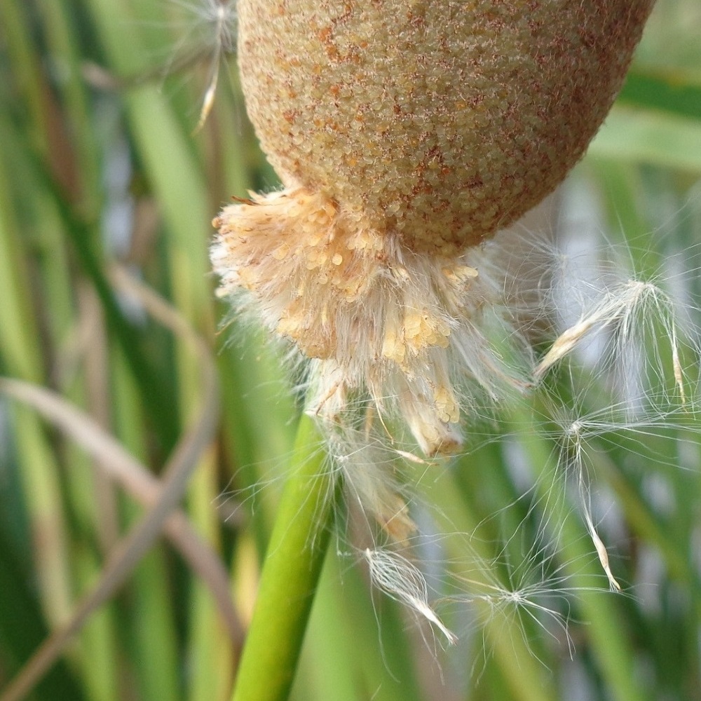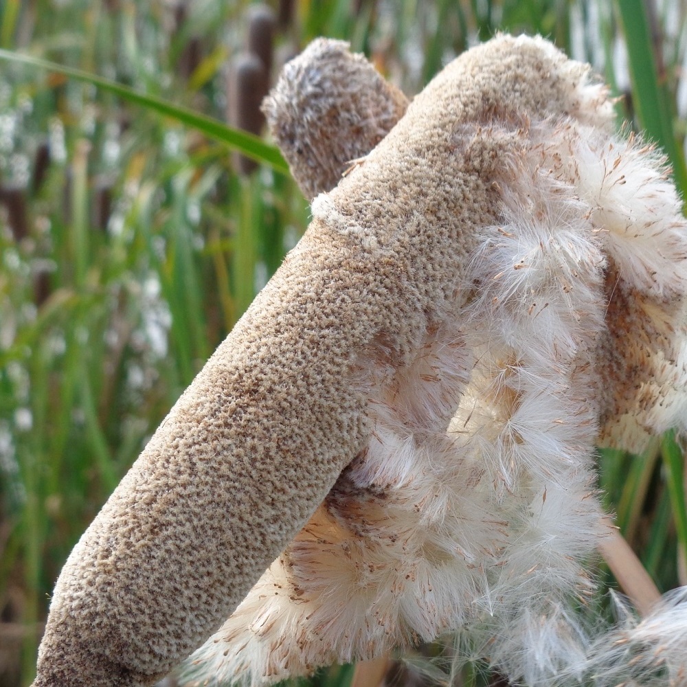 - ①蒲(ガマ)の穂がほぐれて綿毛を飛ばしています。ちょっと触っただけで穂が崩れて綿毛が飛び出し飛散されます。