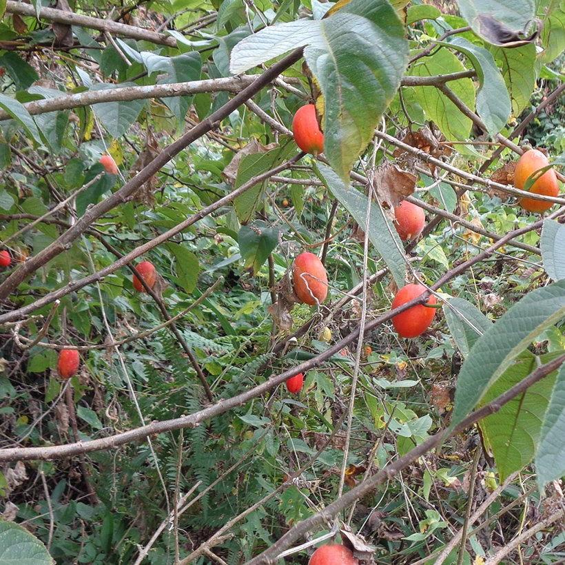 ②柿(カキ)の実が生っています。実は日本の国果は「柿」なんですよ。日本では昔から柿が愛されてきた証拠ですね。