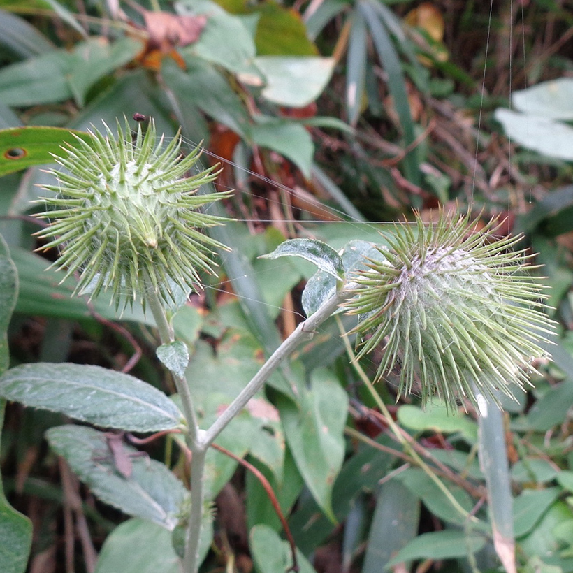 ②雄山火口(オヤマボクチ)が咲いています。山に生え、葉の裏にある白い綿毛を火口(ホグチ)に使ったことからこの名になりました。花はアザミに似ていますが、何とも不気味な感じがします。