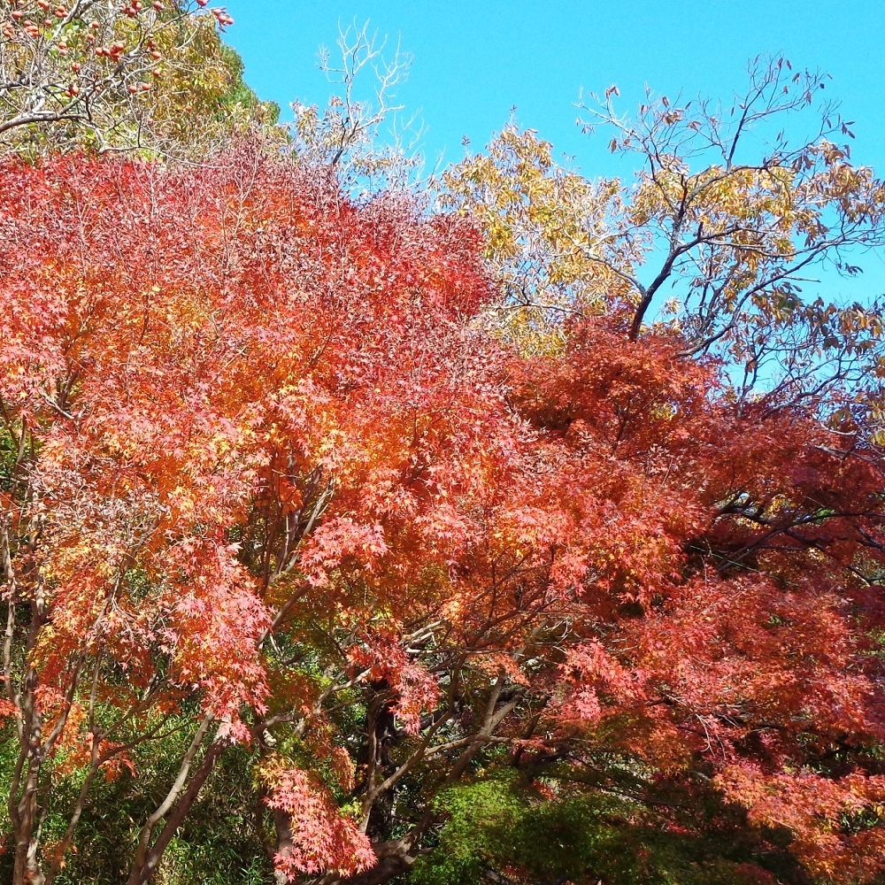 - 12/3(水)現在の「園内の紅葉・黄葉状況」です。童謡もみじの歌の通り「♪赤や黄色の色さまざまに〜♪」ですね。
