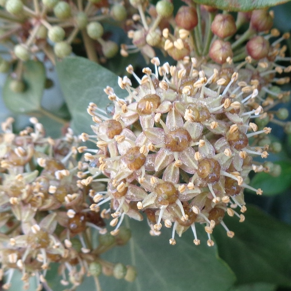 ④屁糞葛(ヘクソカズラ)の実が熟しています。直径5mm程の黄褐色の丸い実で、名前通り実も臭いにおいがします。