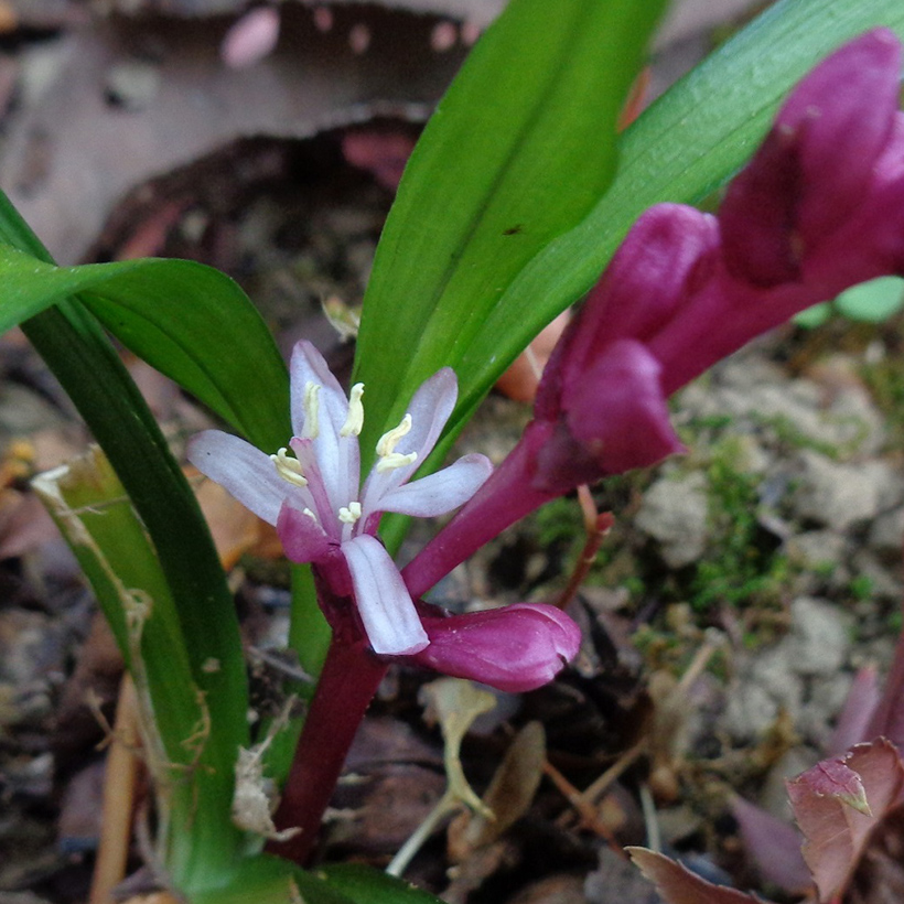 ②吉祥草(キチジョウソウ)が咲いています。この花が咲くとその家に吉事があると言い伝えられているハッピーな花