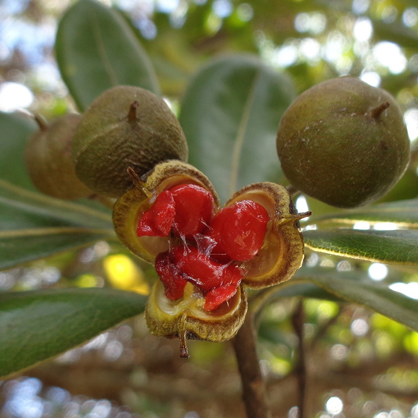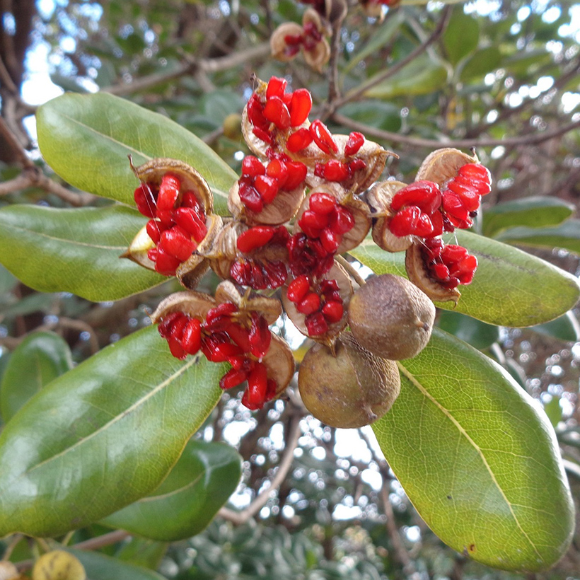 ▲実が割れるとオレンジ色の種が出てくる