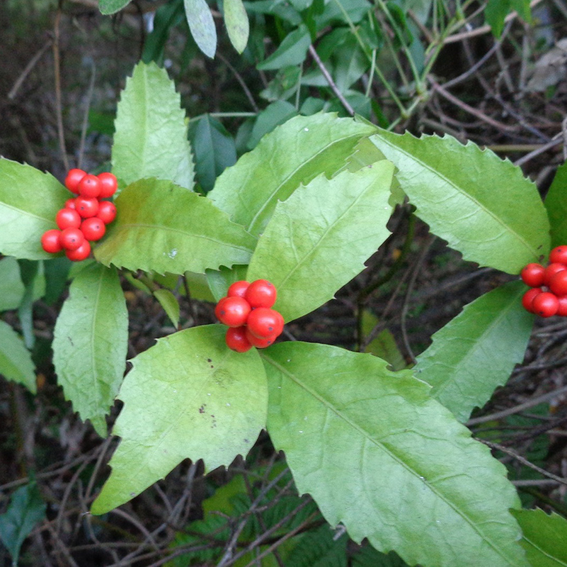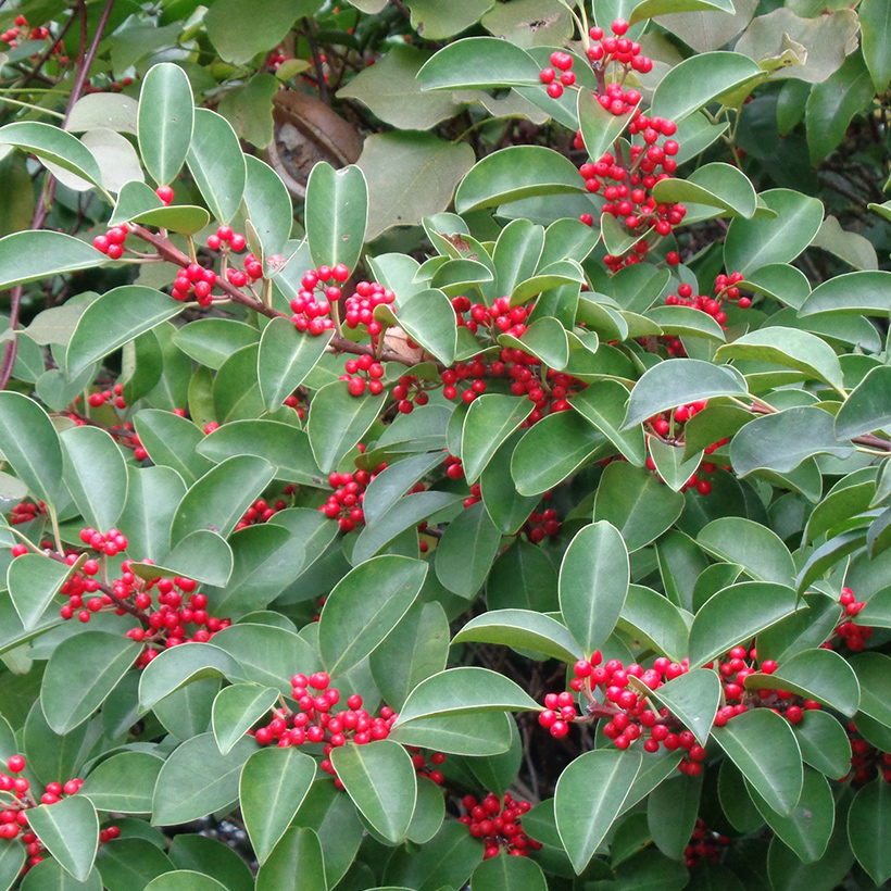 - ①千両(センリョウ)の実がきれいです。花の少ない時期に美しい実をつけ正月の縁起物として人気の高い植物です。