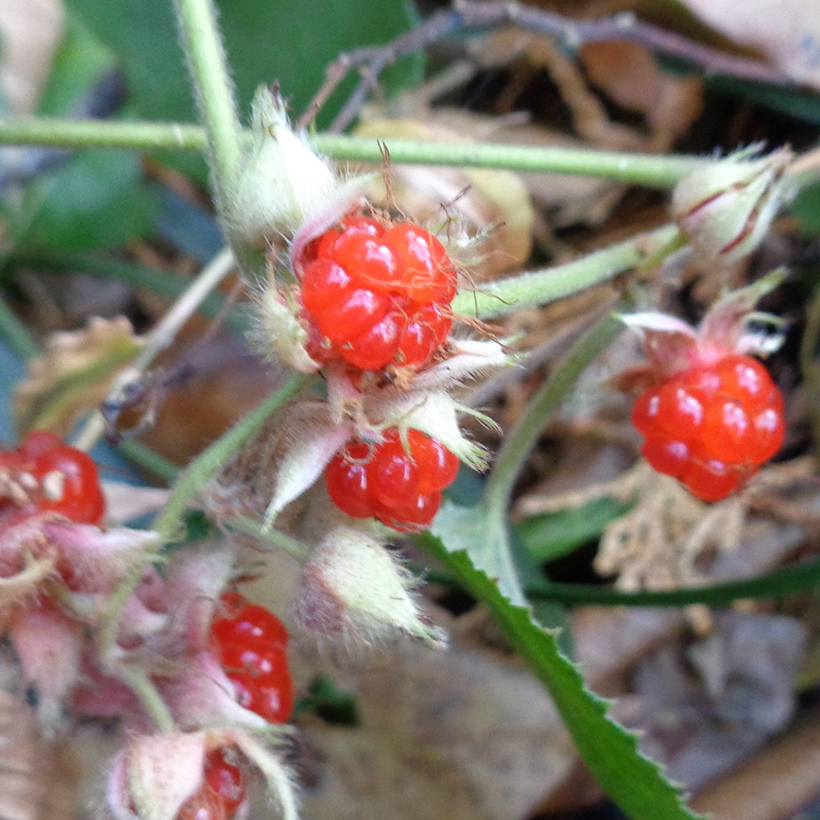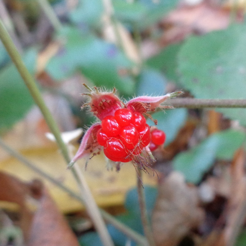 ②冬苺(フユイチゴ)の実が生っています。冬に実が熟すのでこの名がつきました。生食の他ジャム等にして食用されます。
