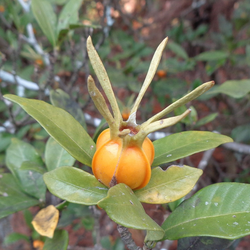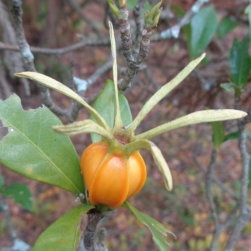 ▲熟すと割れてオレンジ色の果肉が出てくる