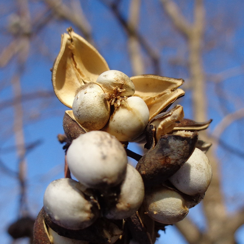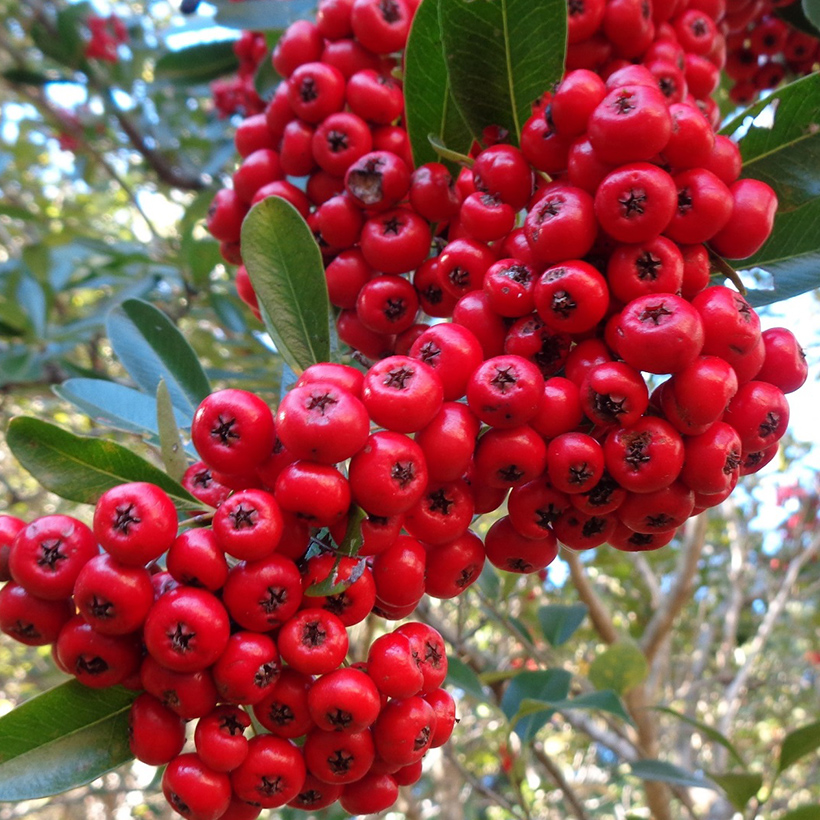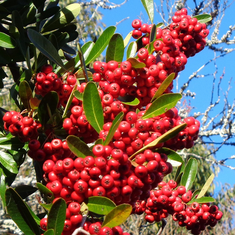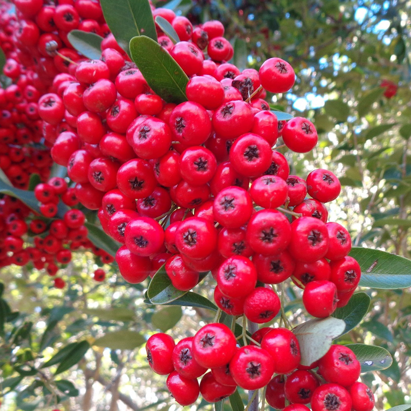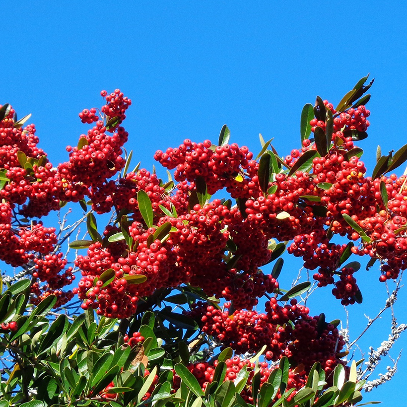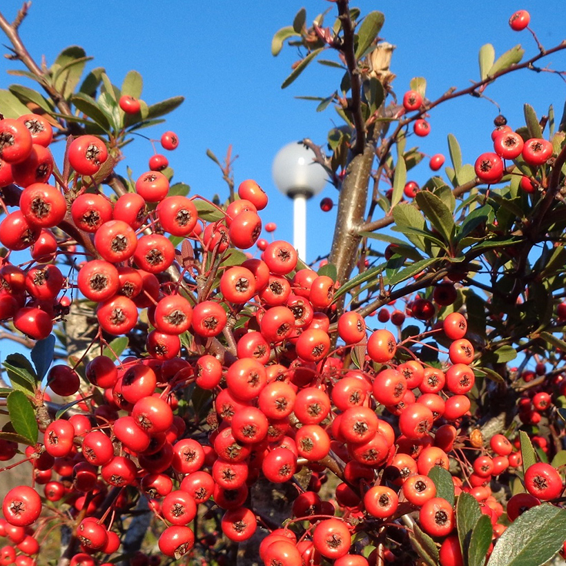 - ①南京櫨(ナンキンハゼ)の種子がきれいです。食料の少ないこの時期は、種を食べに野鳥たちが集まりとても賑やかです。種子の周りの白い部分からは蝋の成分が採れて蝋燭の材料になります。