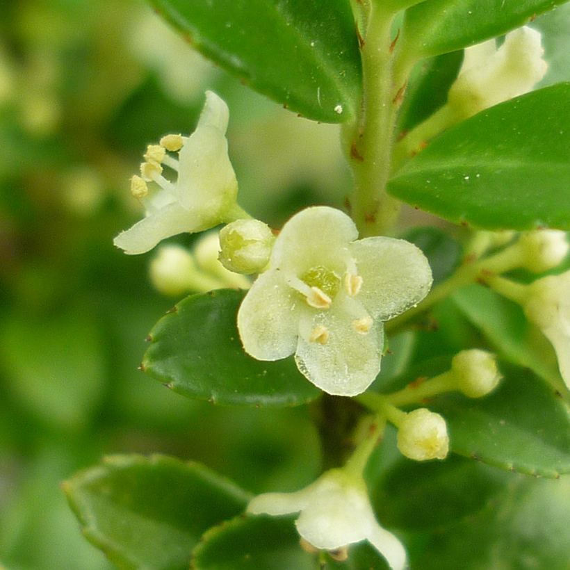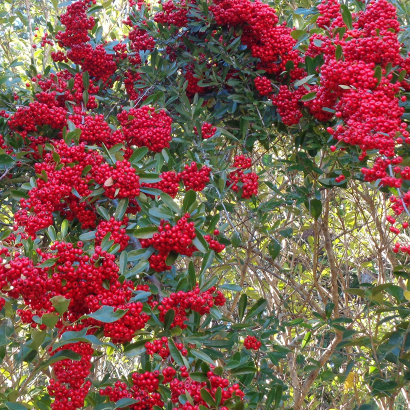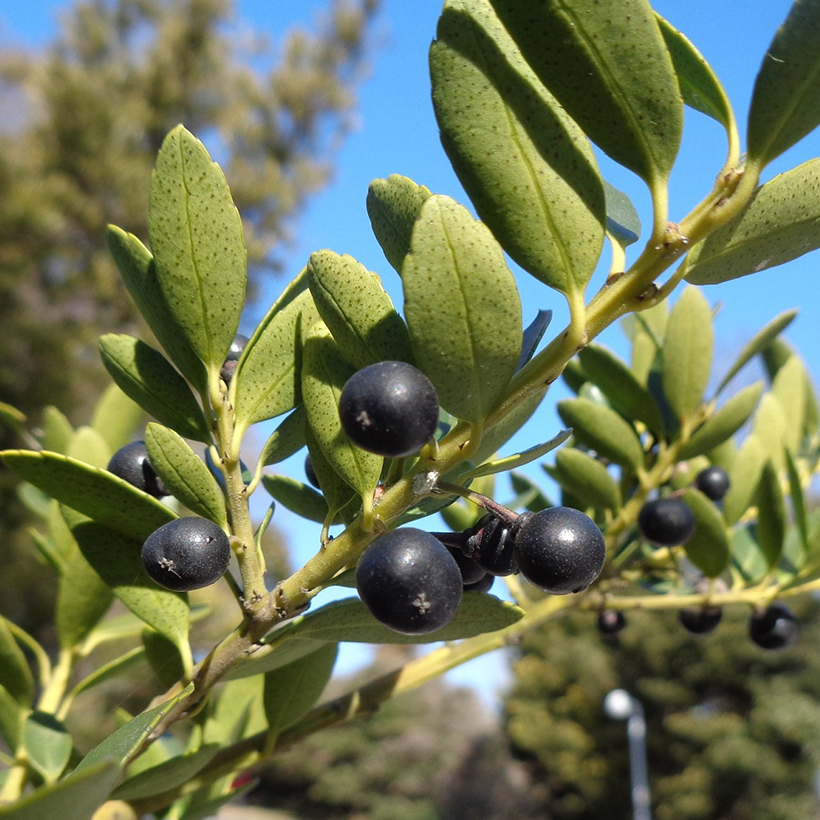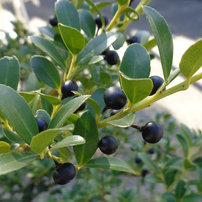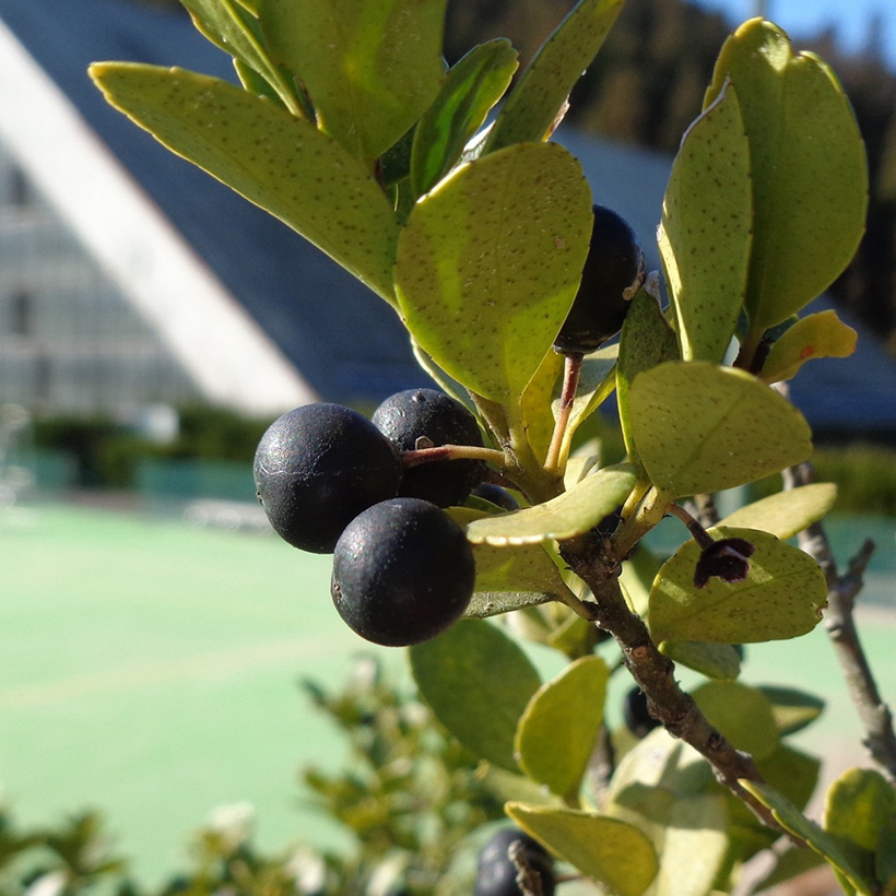 ②犬黄楊(イヌツゲ)の実が熟しています。野鳥たちにあまり人気がないらしくまだ実がたくさん残っています。