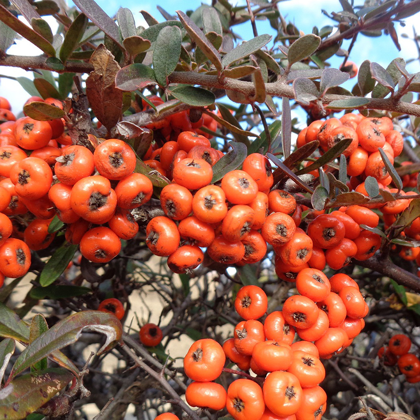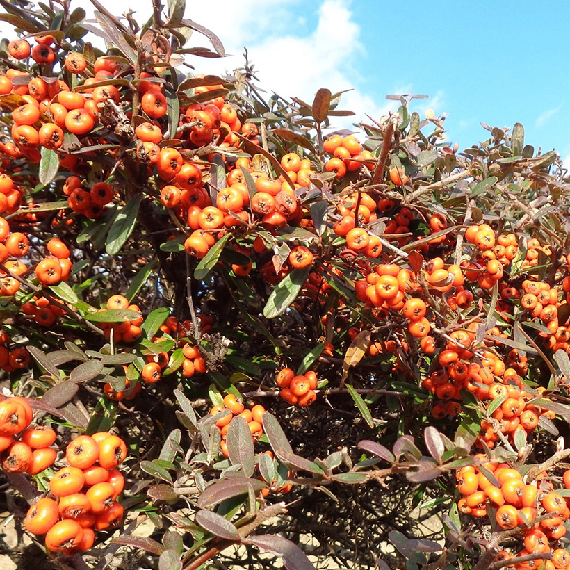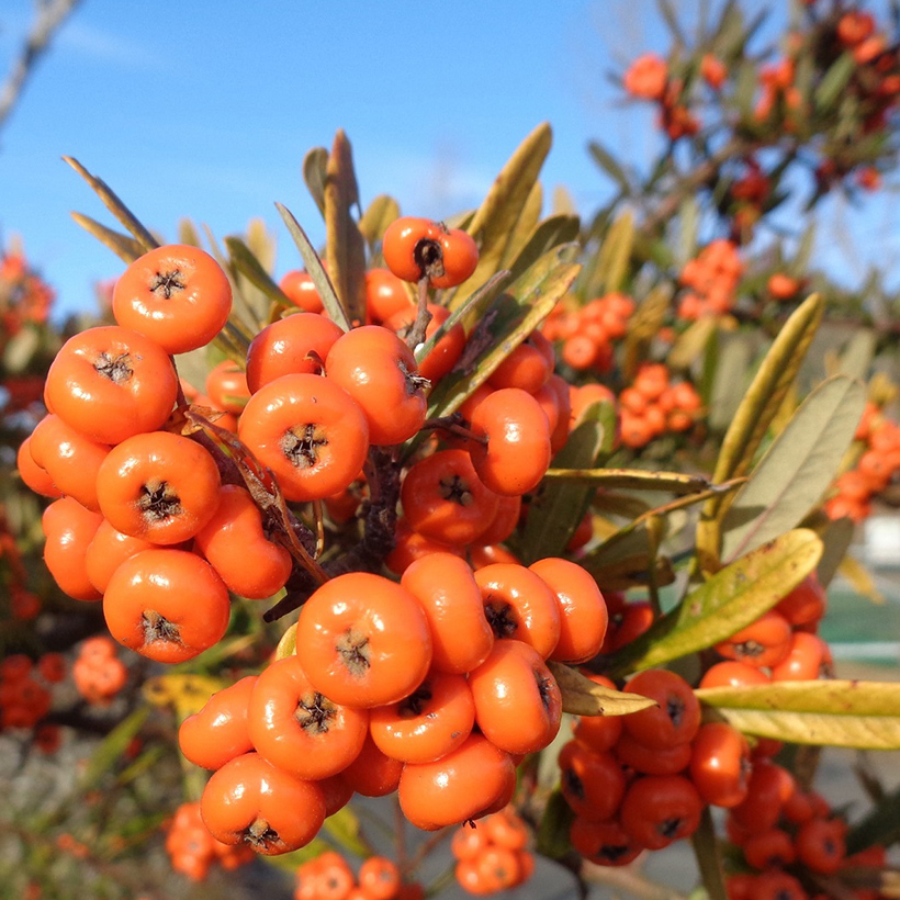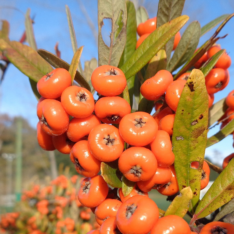 - 橘擬(タチバナモドキ)の実が鮮やかです。中国南西部原産で明治時代に渡来しました。直径約5〜8mmの扁平した球形のオレンジ色の実で、実の形と色がミカン科のタチバナに似ていることからこの名がつきました。