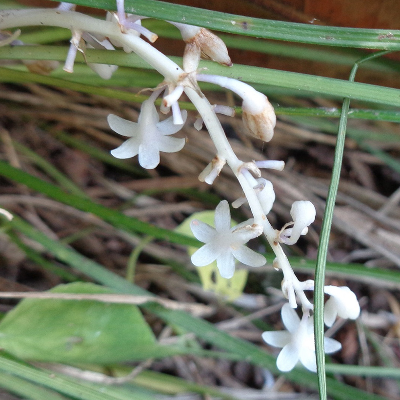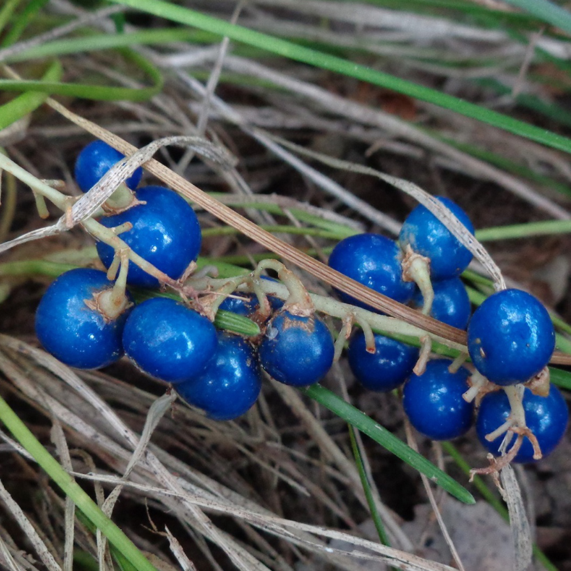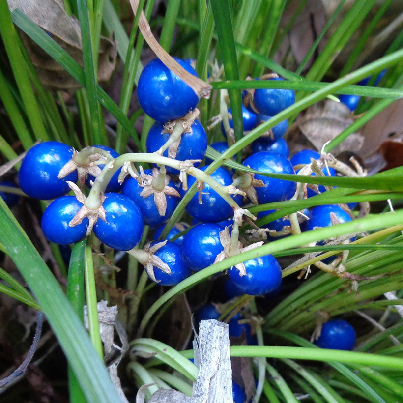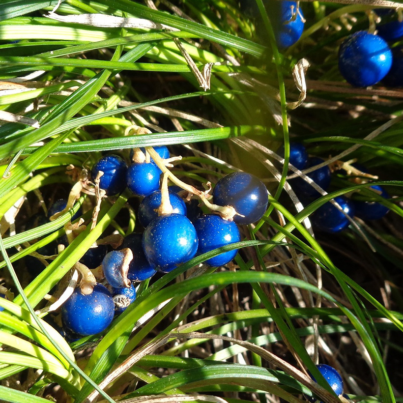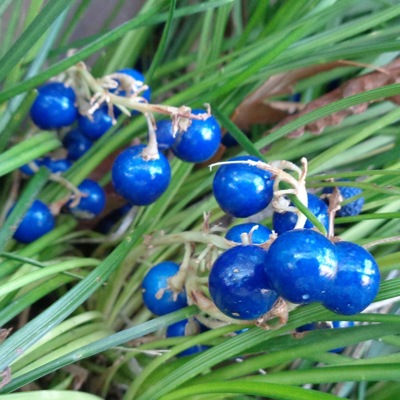 ②蛇の髭(ジャノヒゲ)の実がついています。ほとんどの実は赤なのに艶のある青い実はとてもきれいです。