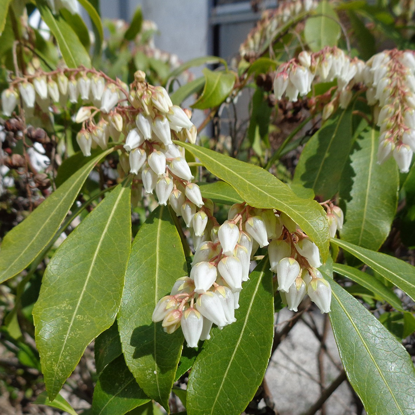 ▲白い壷型の花が連なっている