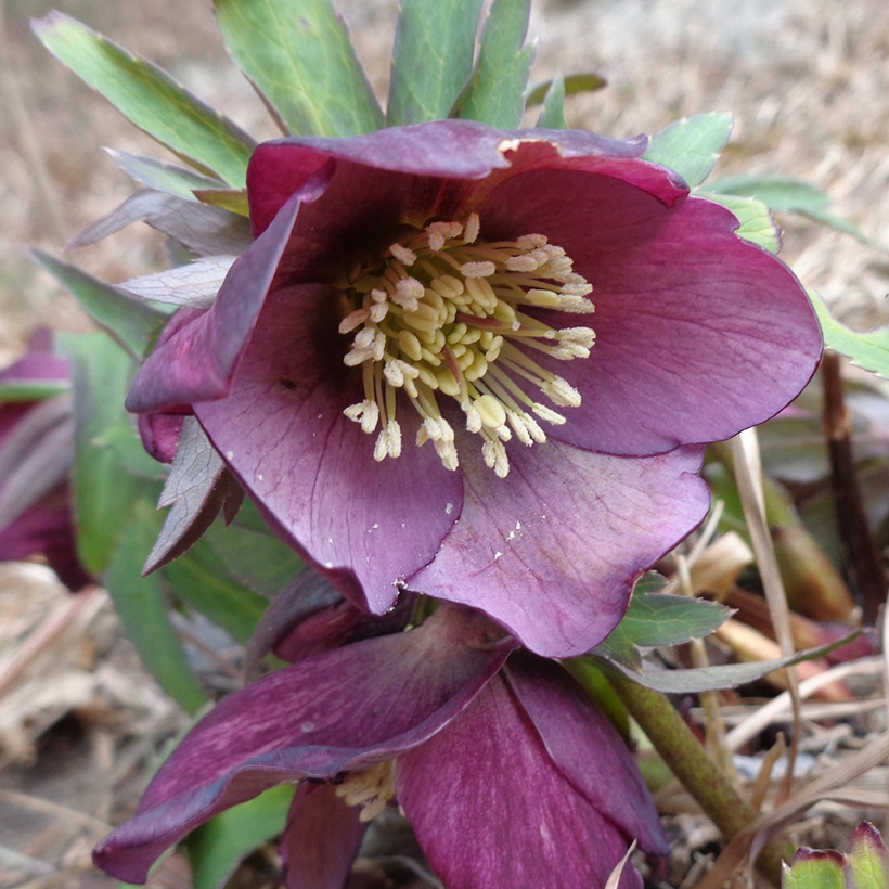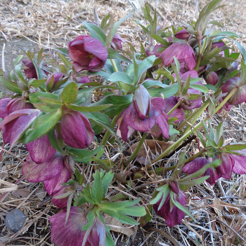 ▲下を向いて咲く紫色のクリスマスローズ