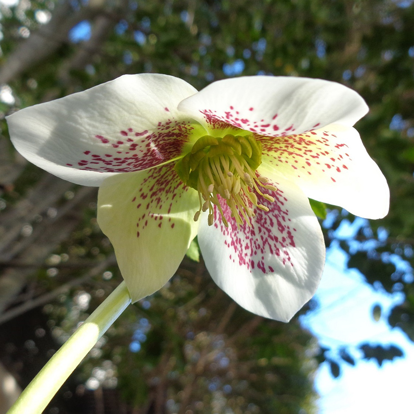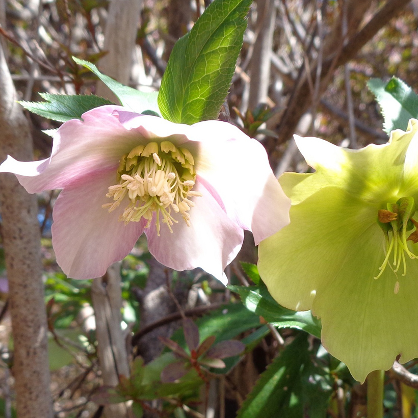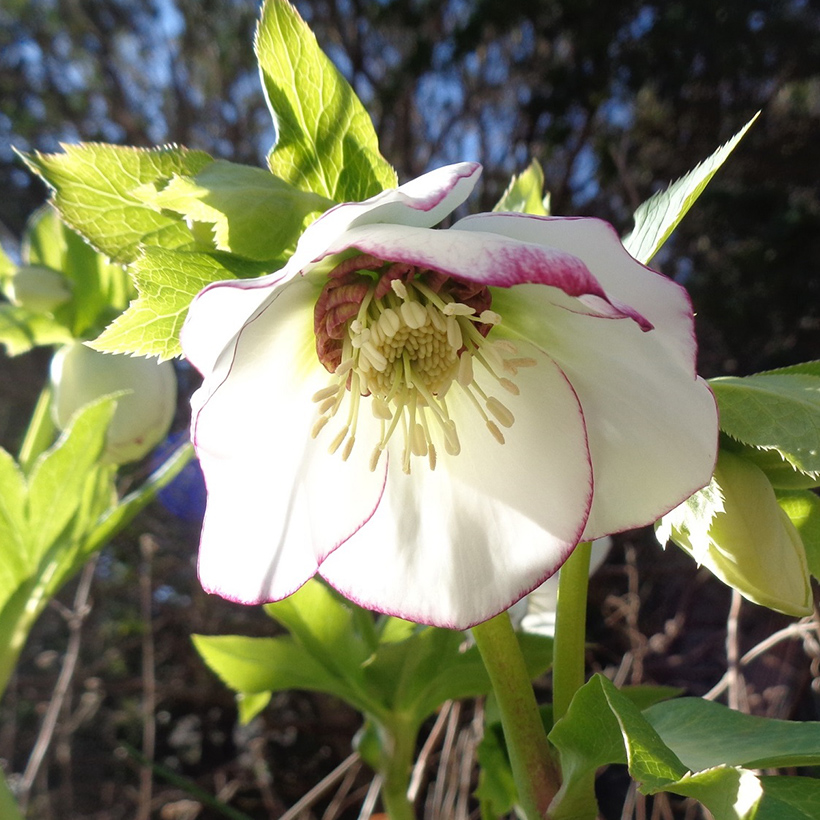 - クリスマスローズが咲いています。クリスマスの時期に咲くバラに似た花ということからこの名になりました。多くの交配種があり花色や花形等が異なるので、ひとつひとつ下から覗いて観察してみると楽しいですよ。