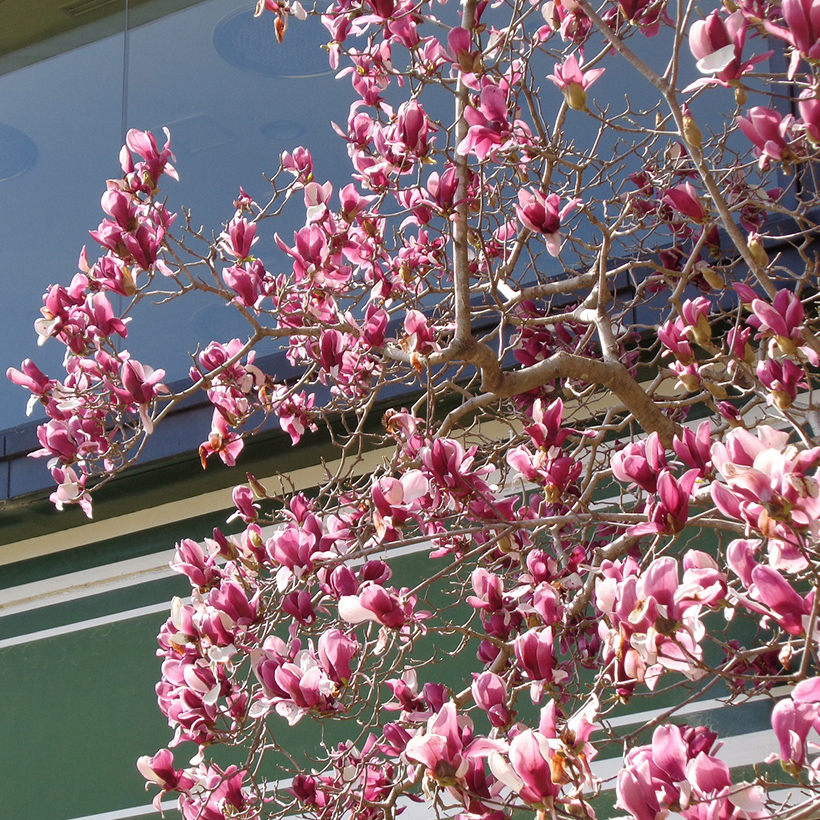 ▲ホテルサウスウイング下の辛夷