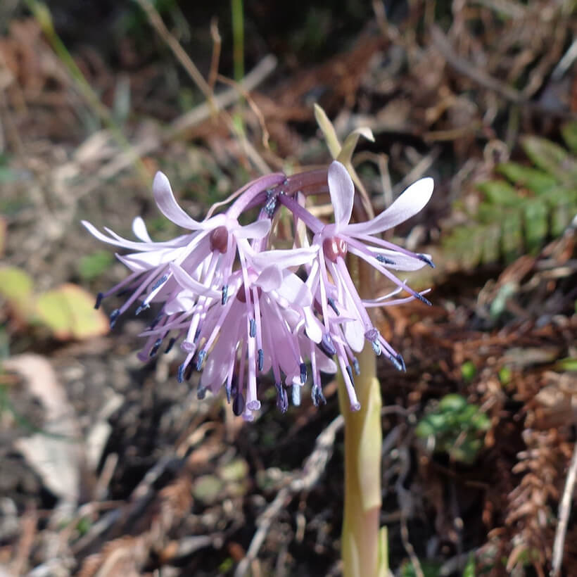 - ①猩猩袴(ショウジョウバカマ)が咲いています。湿気を好み、つま恋神社鳥居付近と五百済坂に群生しています。