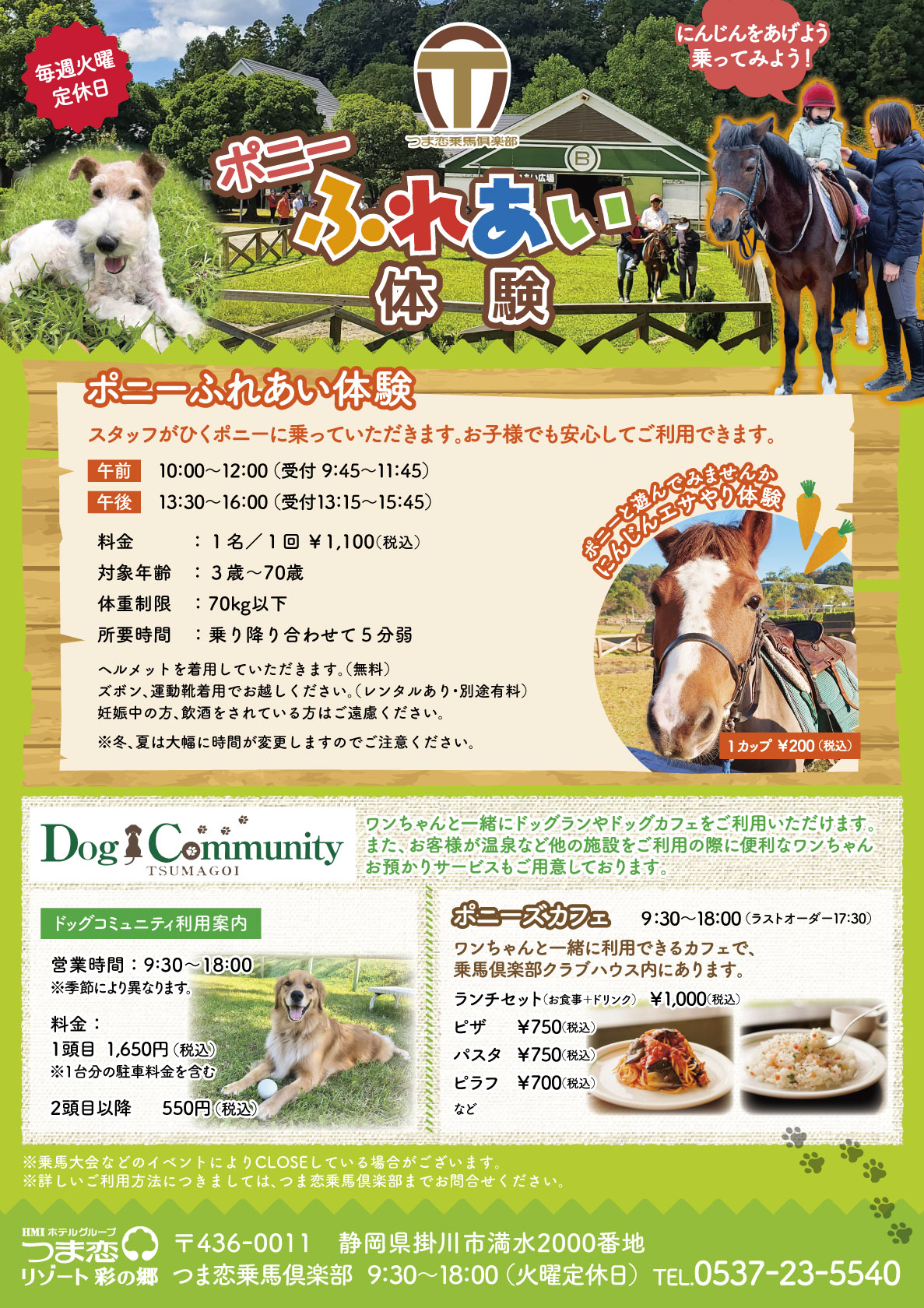 - お問合せ先:乗馬倶楽部 0537-23-5540